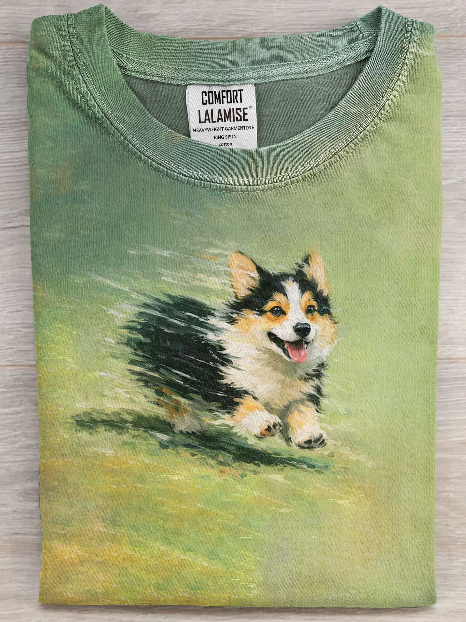 Funny Cute Dog Art Print Casual Short Sleeve T-shirt