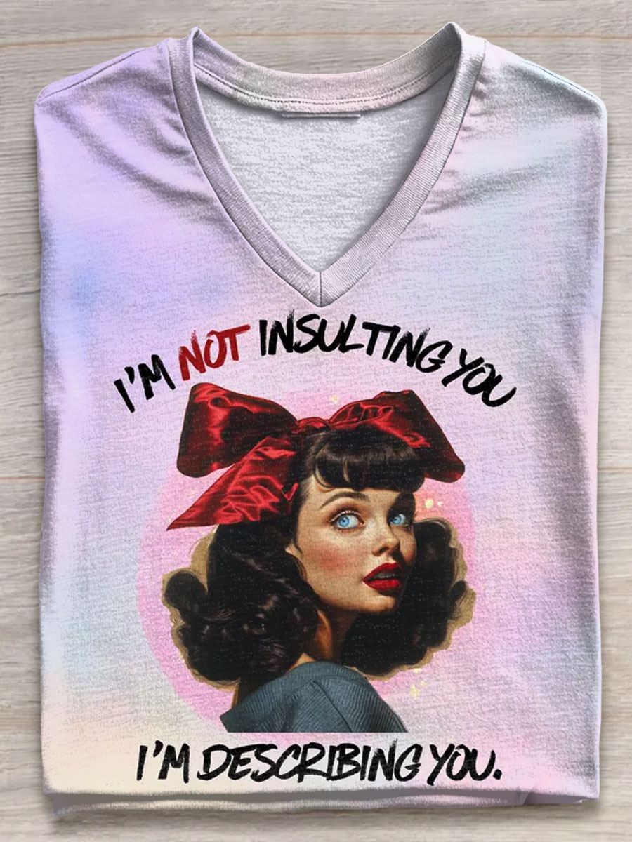 Vintage Funny I'm Not Insulting U I 'm Describing U Art Print V-neck Casual T-Shirt