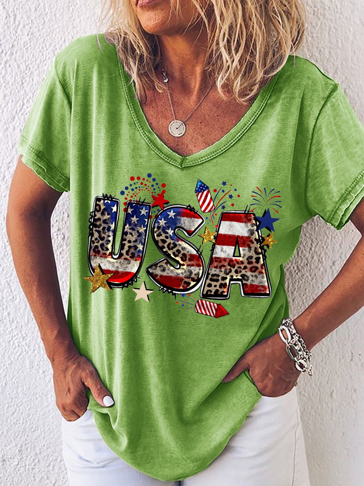 Women‘s Cotton American Flag Cute July 4th Independence Day Patriotic Casual Letters T-Shirt