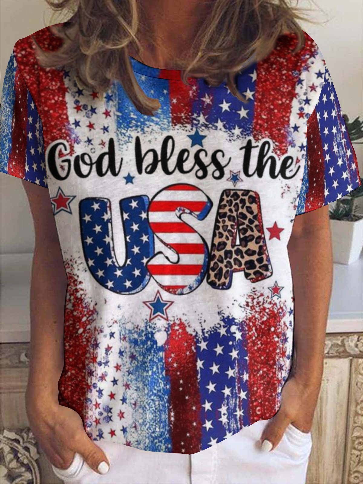Women's American Flag Quote Patriotic Crew Neck Casual T-Shirt