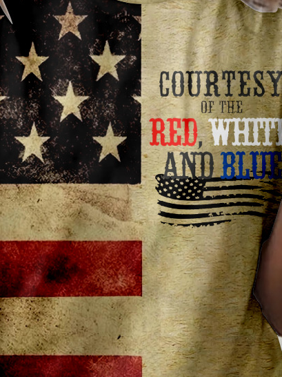 Women's Courtesy Of The Red White And Blue Printed Casual Crew Neck Flag Regular Fit T-Shirt