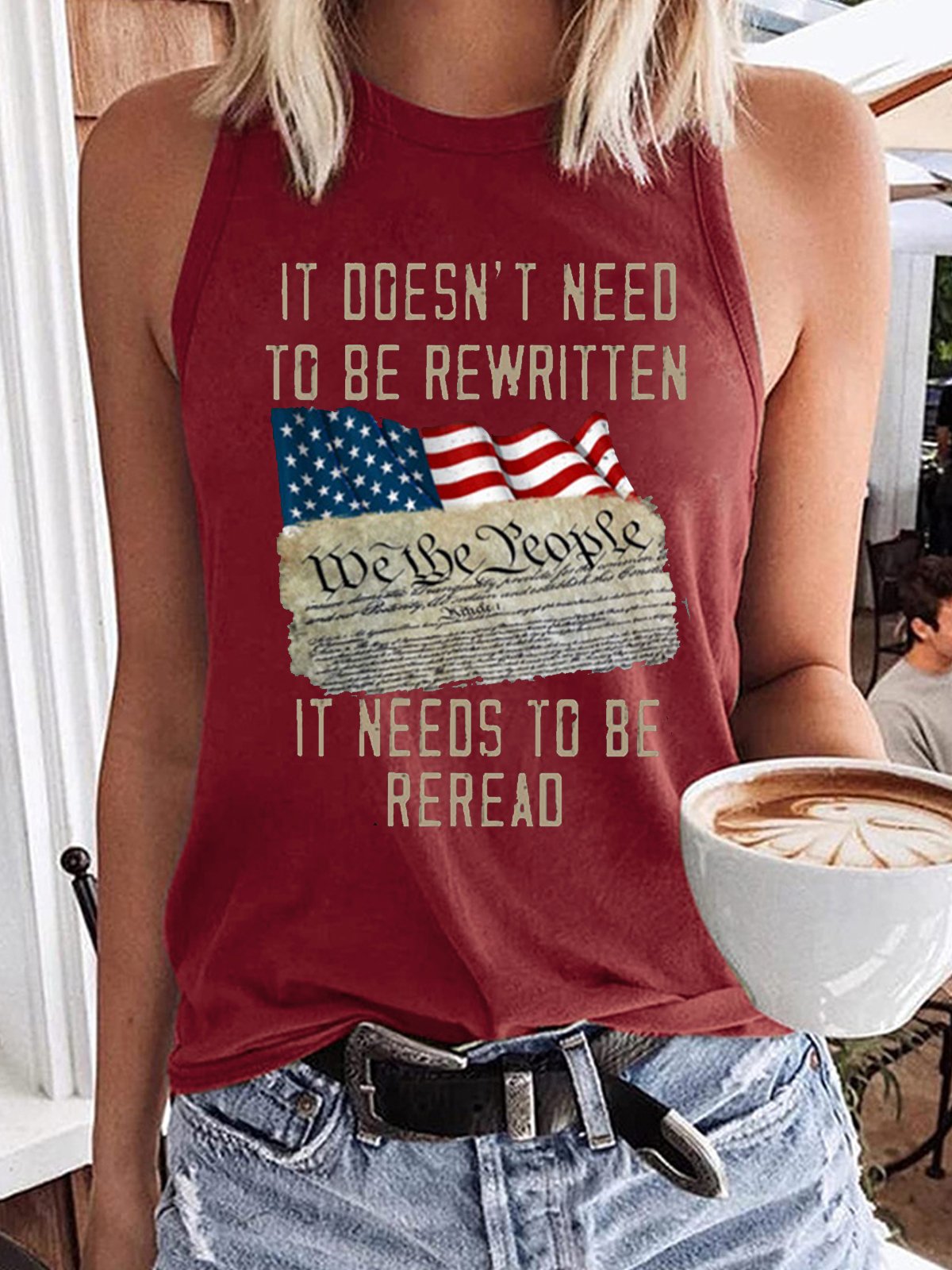 Women's It Doesn't Need To Be Rewritten It Needs To Be Reread We The People Print Crew Neck Tree Casual Tank Top