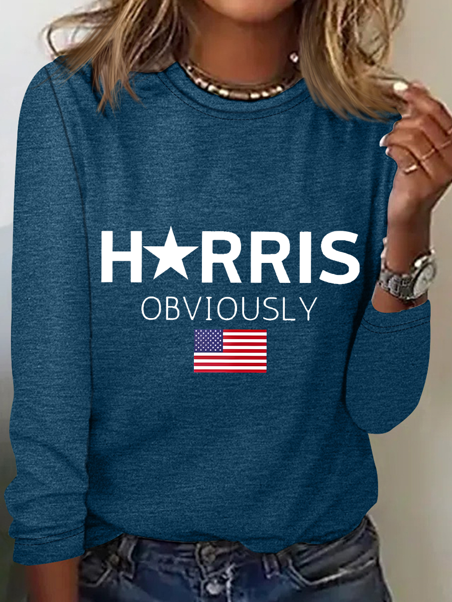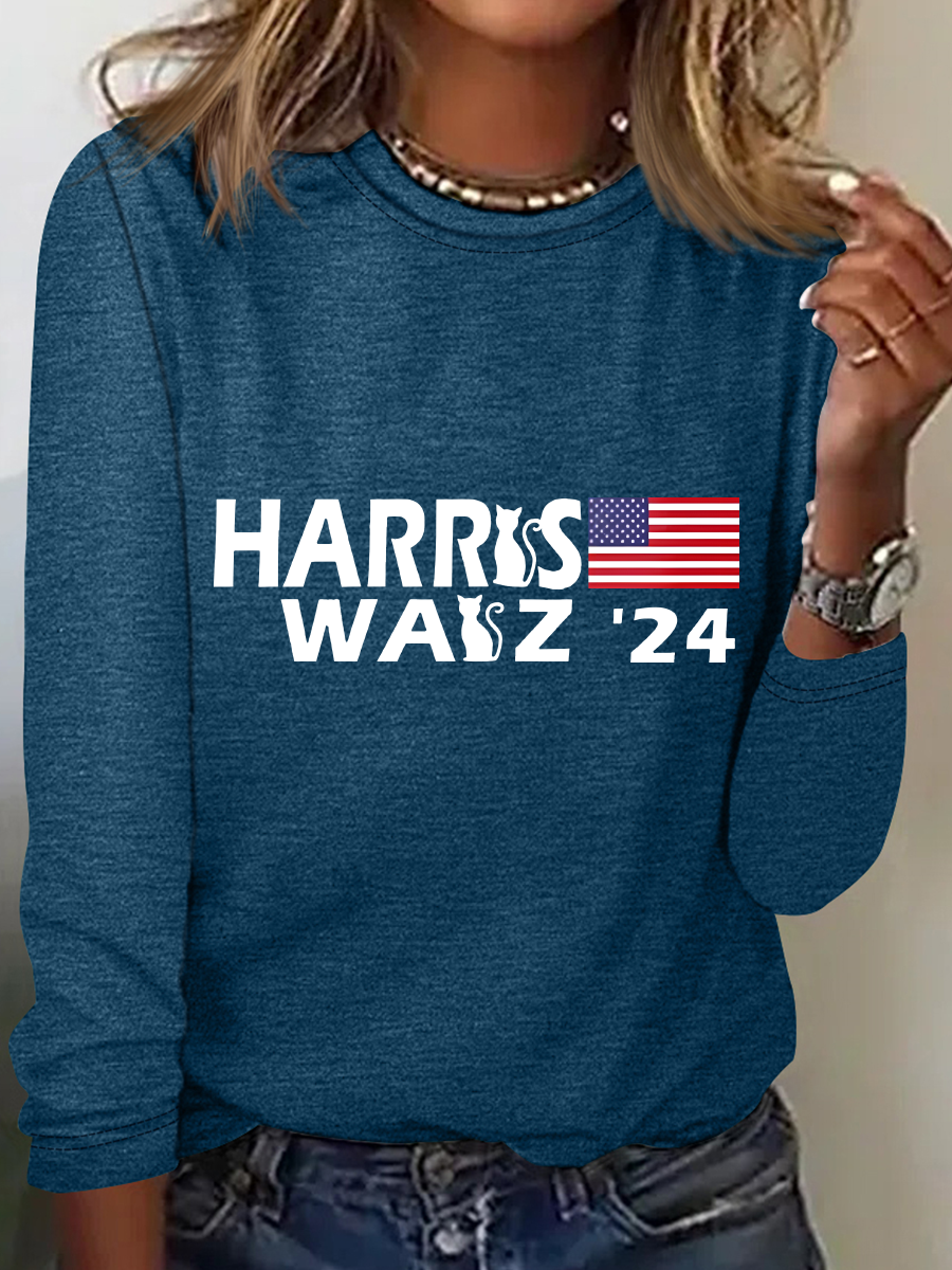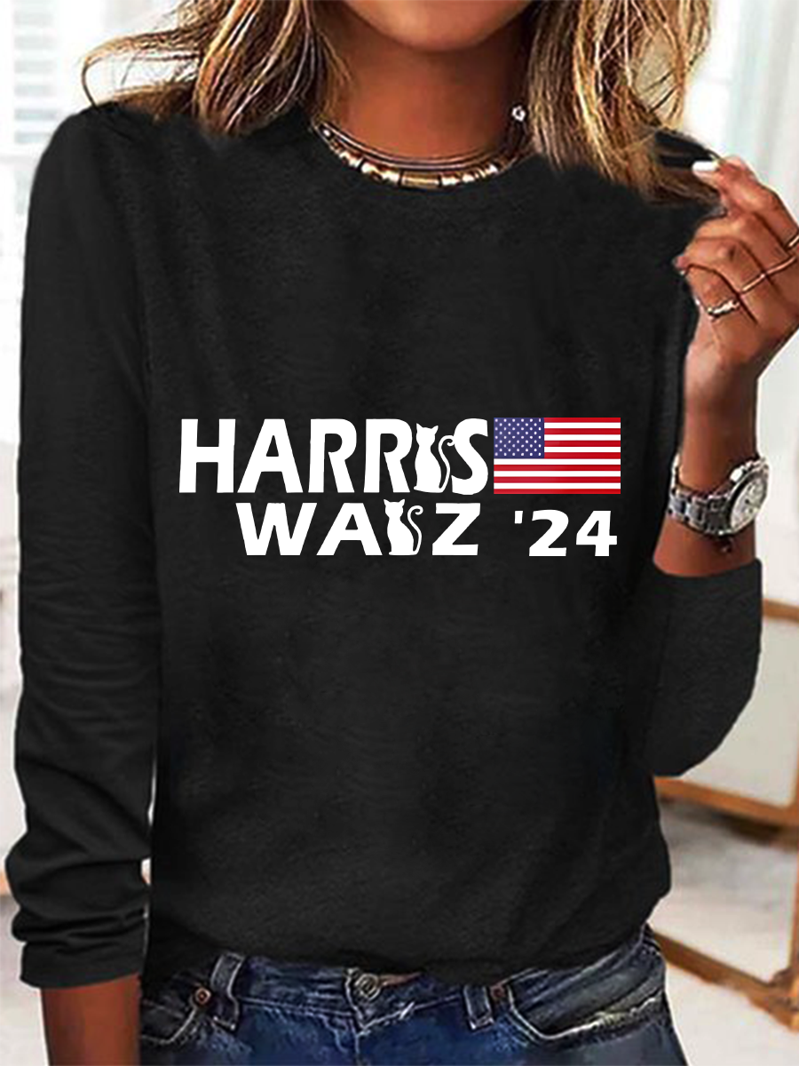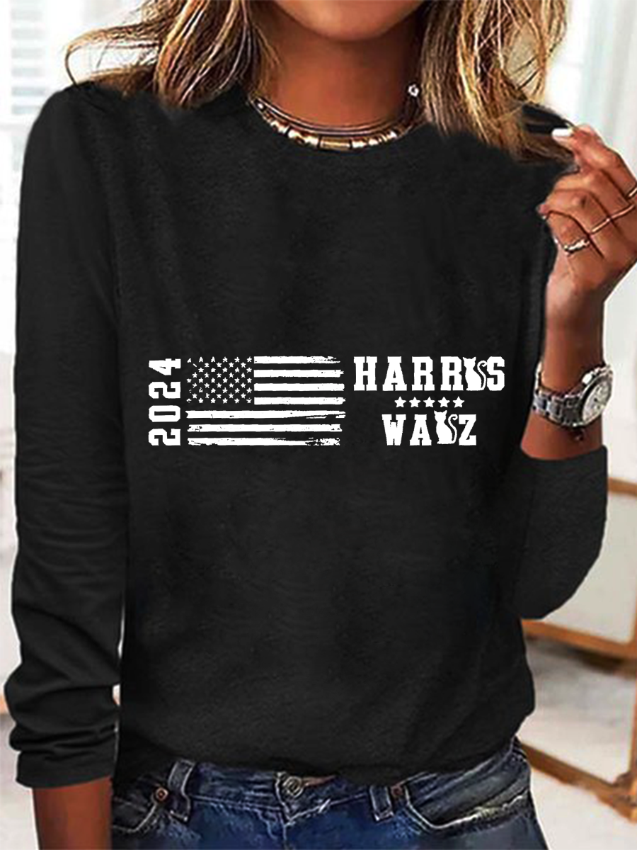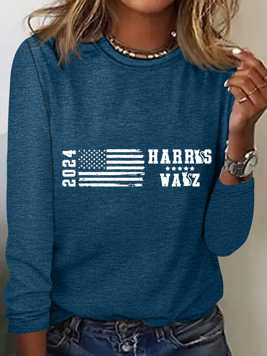 Women's July 4th Independence Day Flag Print Round Neck Long Sleeve T-Shirt