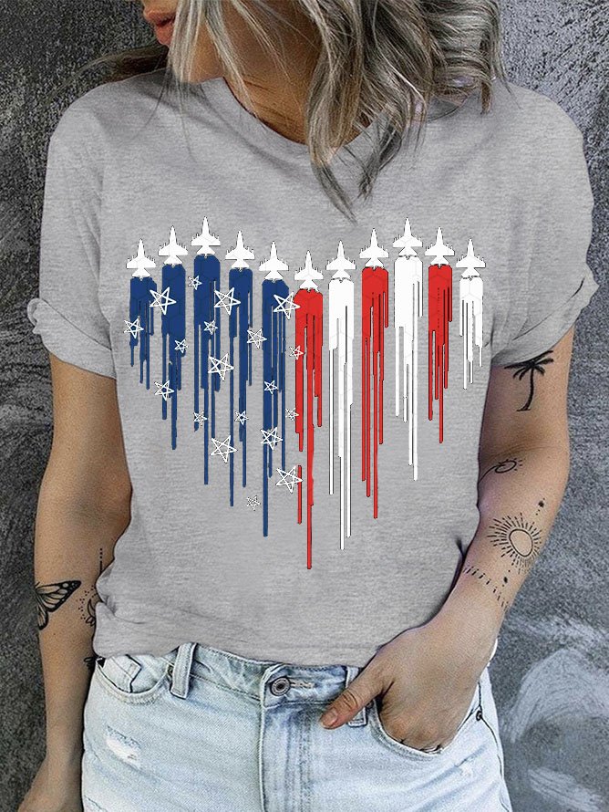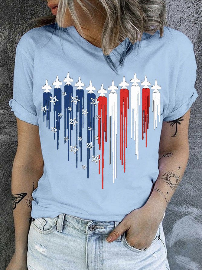 Women's July 4th Independence Day Flag Print V-Neck Short Sleeve T-Shirt