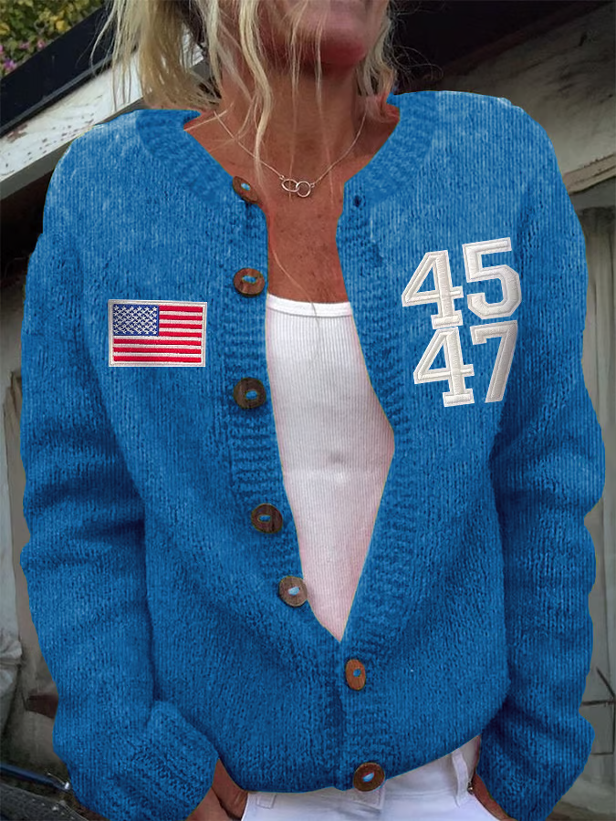 American Flag Print Casual Long Sleeve Shirt