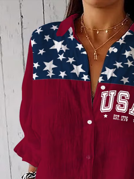 Women's Independence Day Flag Denim Blue Print T-Shirt