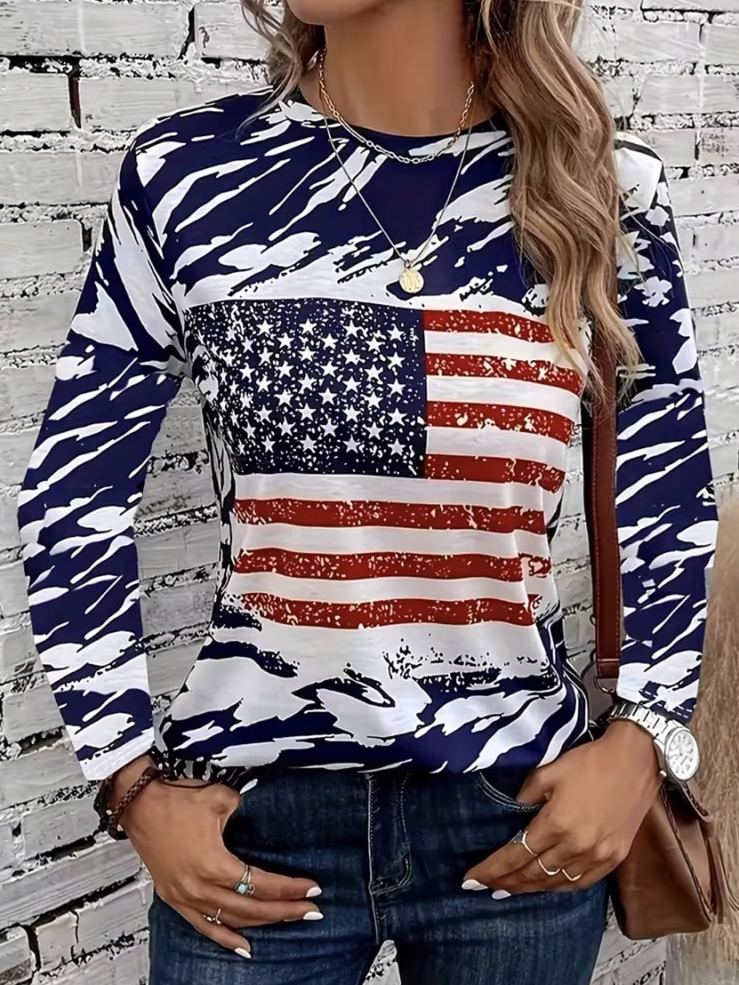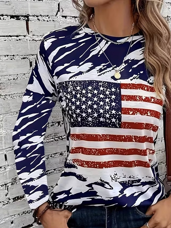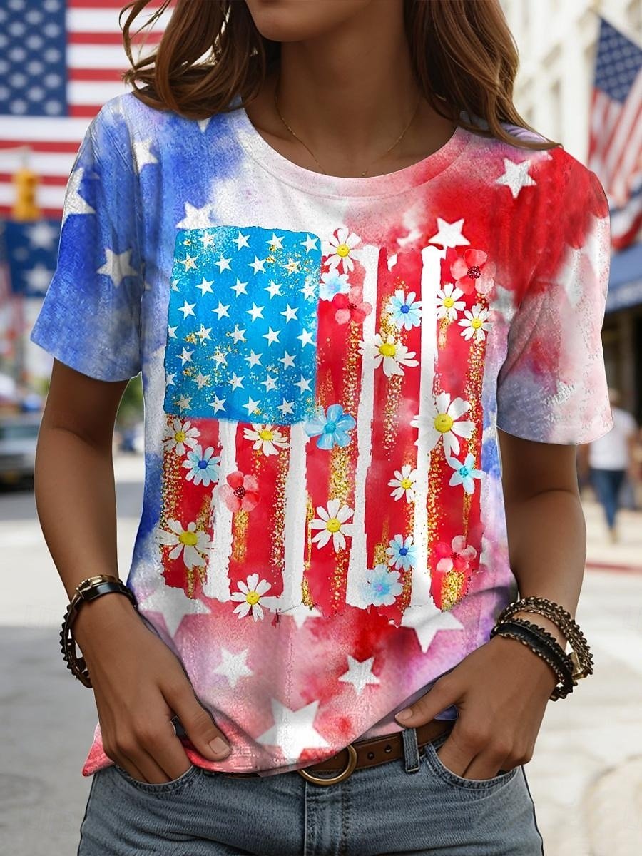 Women's Short Sleeve T-shirt Summer Red America Flag Printing Jersey Crew Neck Daily Going Out Casual Top