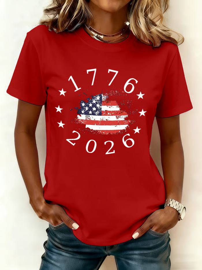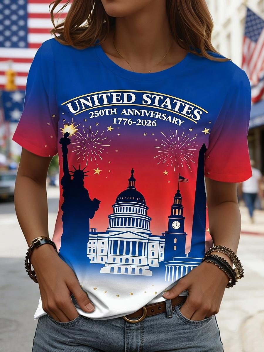 Women's 250th Anniversary Of The Founding Of the United States Cotton Vintage Short Sleeve Crew Neck 3D Printing Daily Going Out Casual T-Shirt