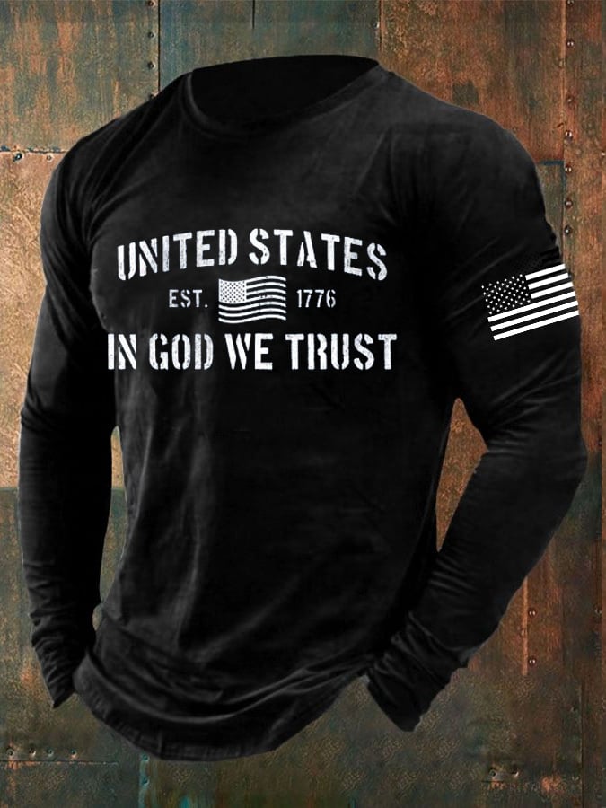 Men's Vintage American Flag In God We Trust Long Sleeve T-Shirt