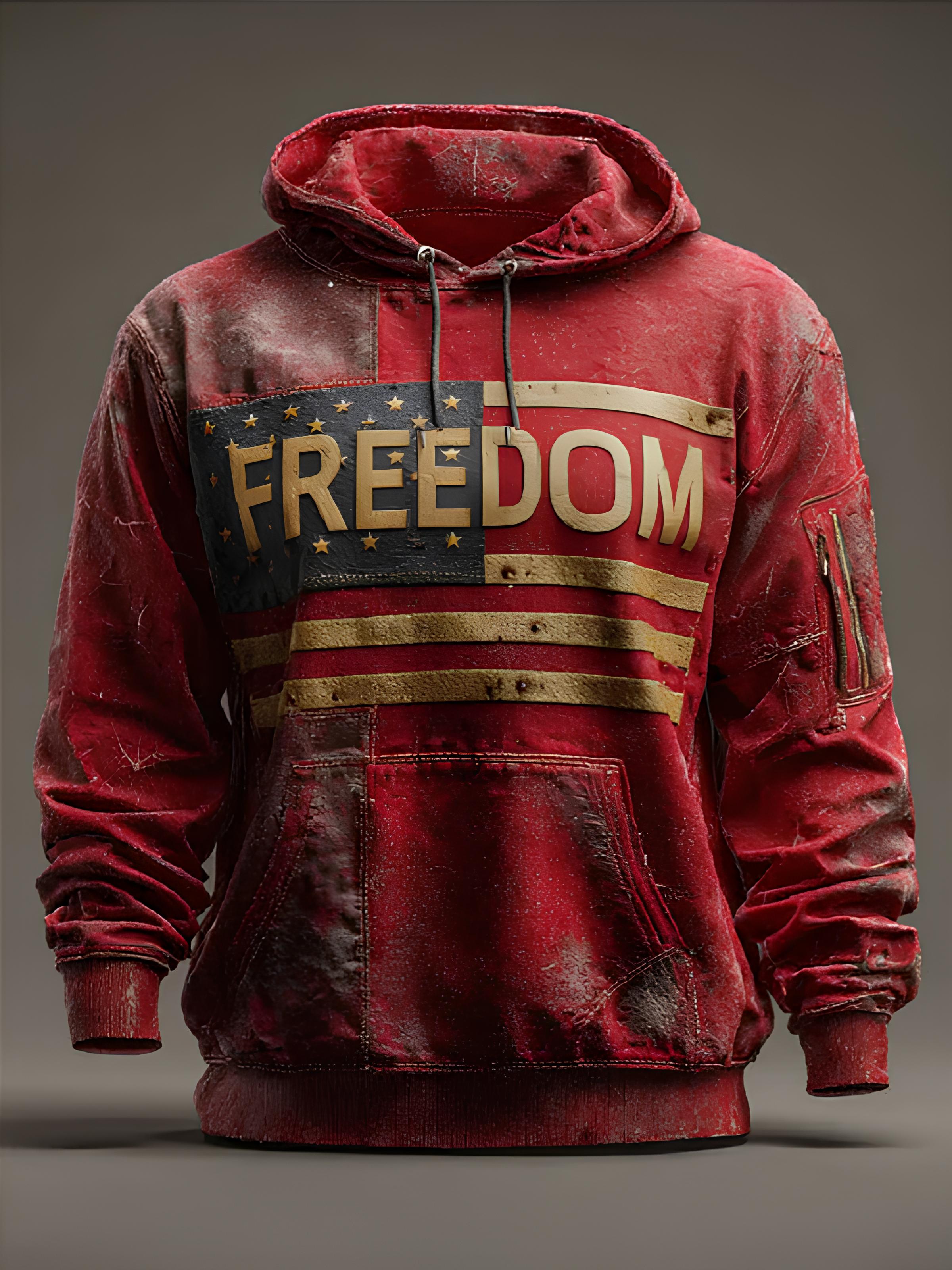 Men's Freedom American Flag Art Print Pocket Hoodie