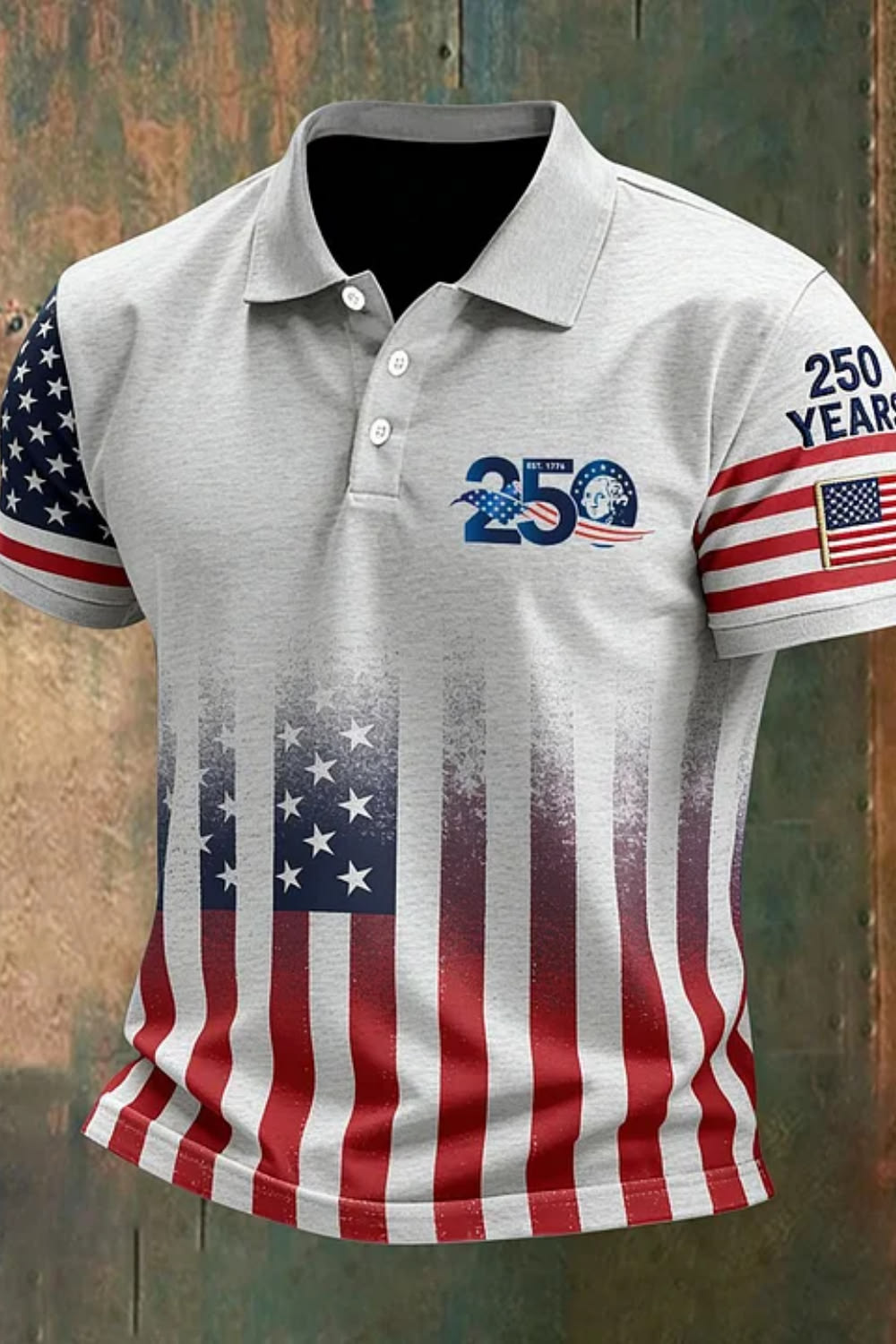 Men's 250 Years American Flag Print Short Sleeve Polo Shirt