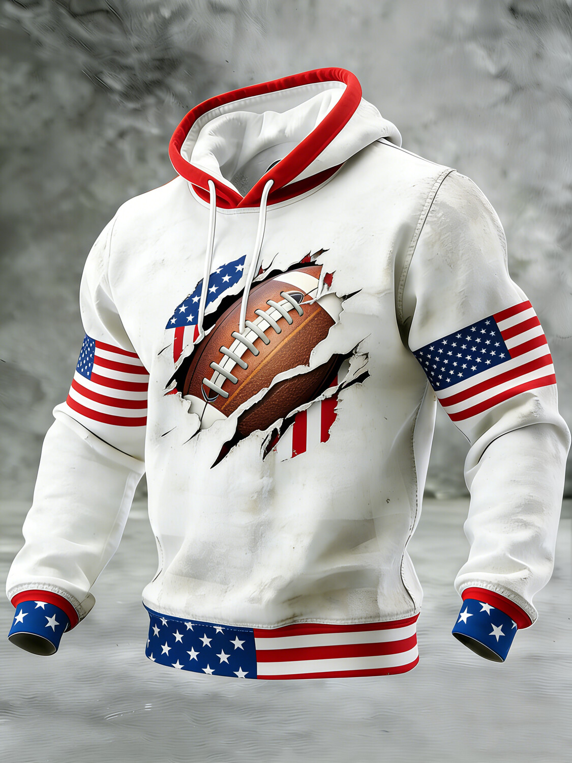 Men's Independence Day American Flag Football Art Print Hoodie