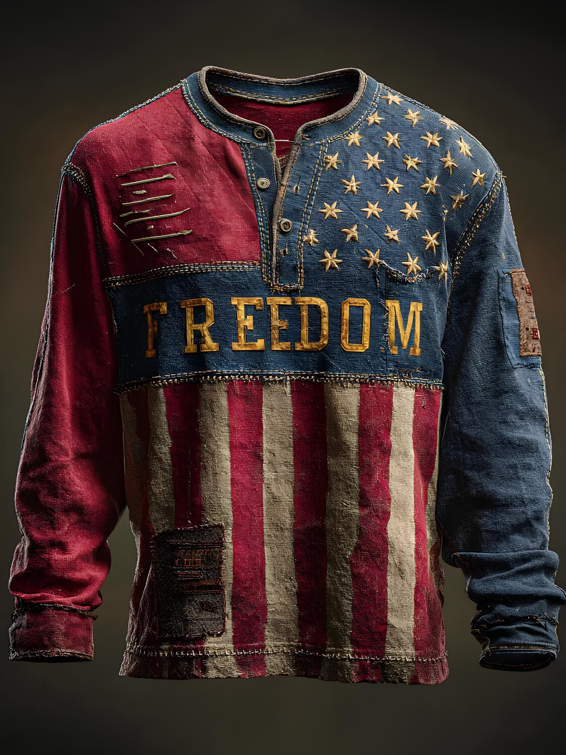 Men's American Flag FREEDOM Print Polo Sweatshirt