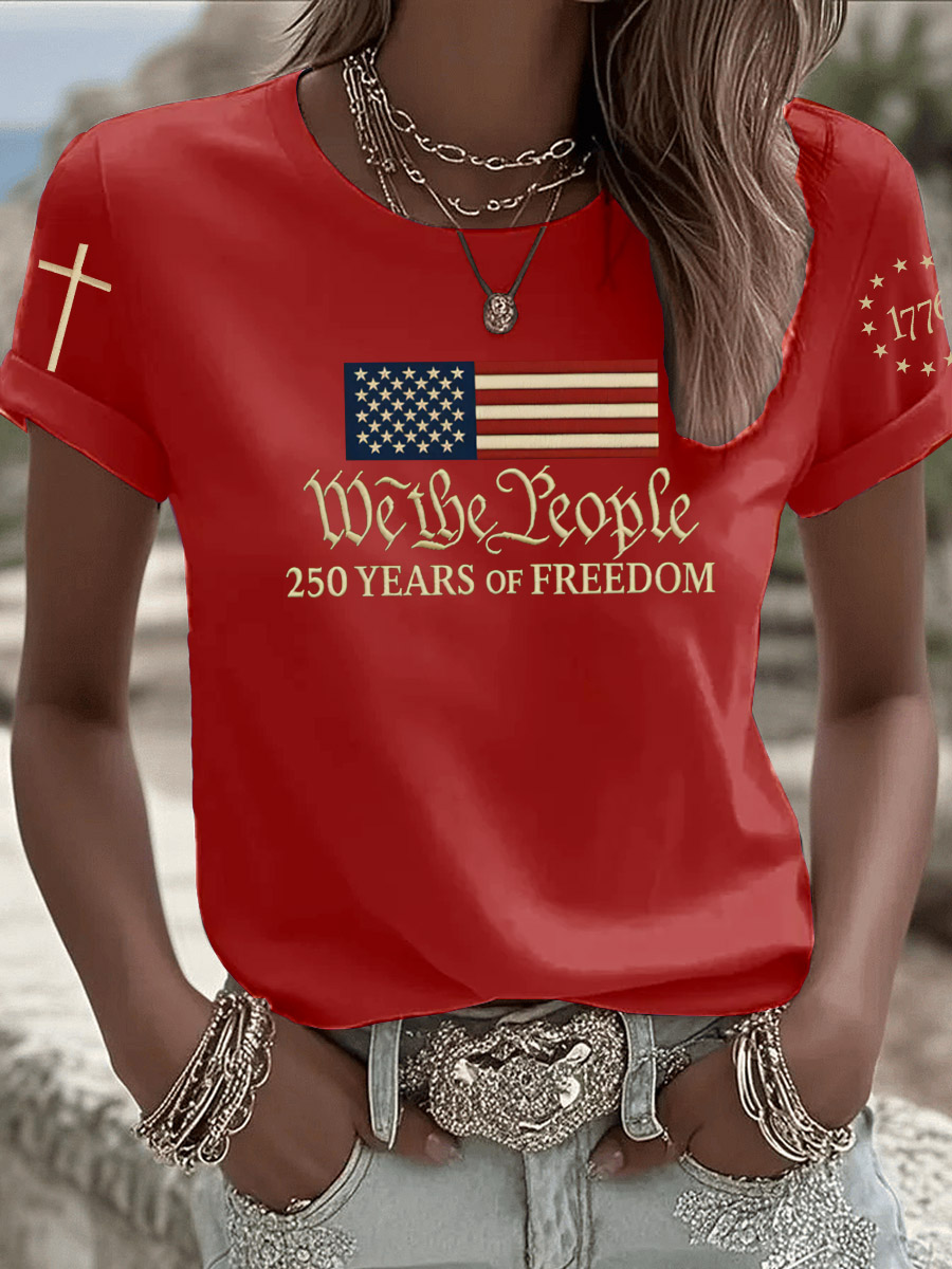 Women's Casual American 250th Anniversary Print T-shirt