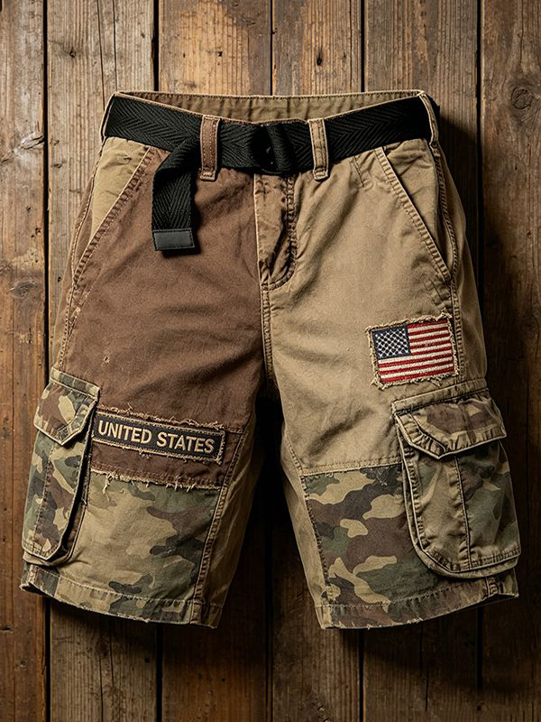 Men's American Flag Camouflage Art Print Denim Casual Shorts