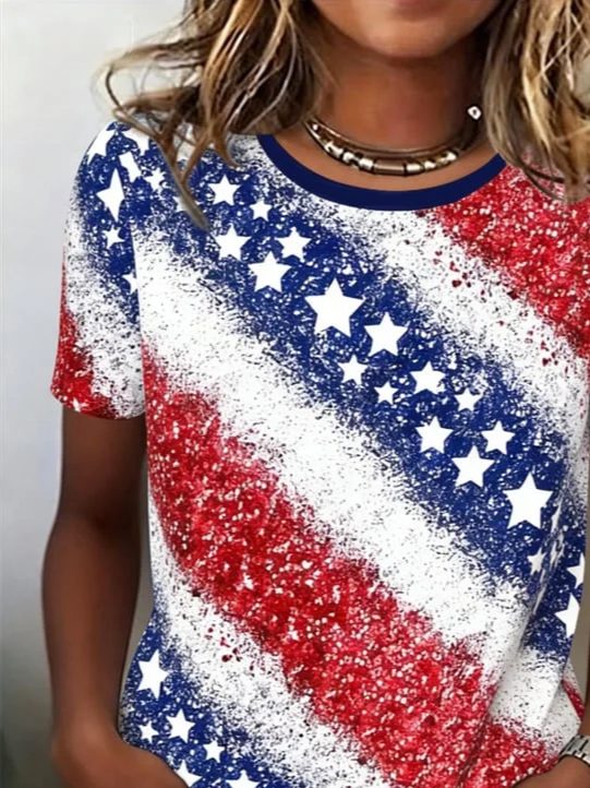 Women's Short Sleeve T-shirt Summer As Picture Independence Day (Flag) Printing Jersey Crew Neck Daily Going Out Casual Top