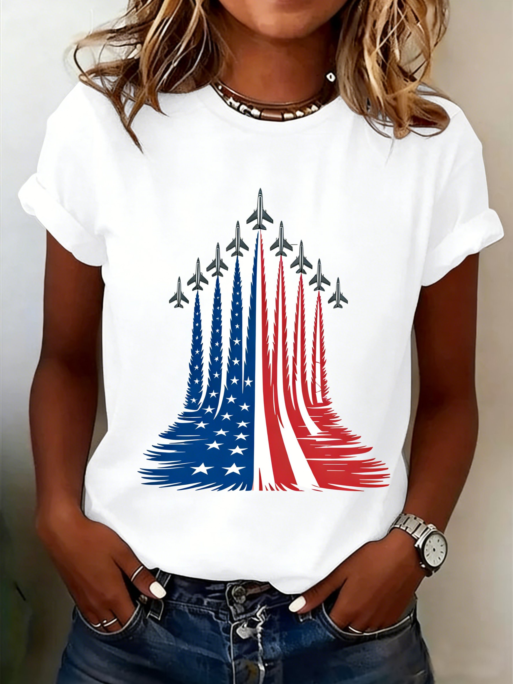 Independence Day Elegant V Neck Loose T-Shirt