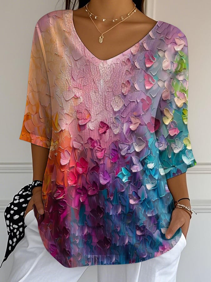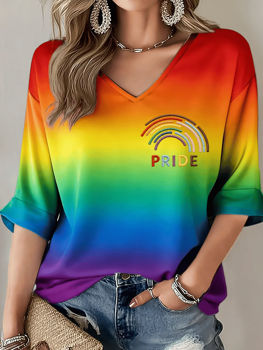 Women's pride rainbow month Mid-length Sleeves V-Neck T-Shirt
