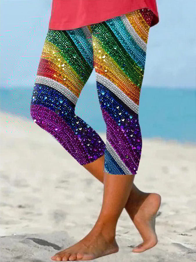 Women's Casual LGBT Rainbow Stripes Print Cropped Leggings