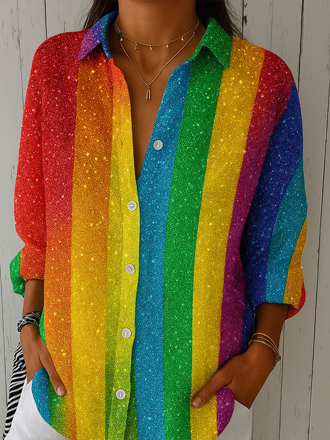 Women's Gay Month Rainbow Print Casual Lapel Shirt