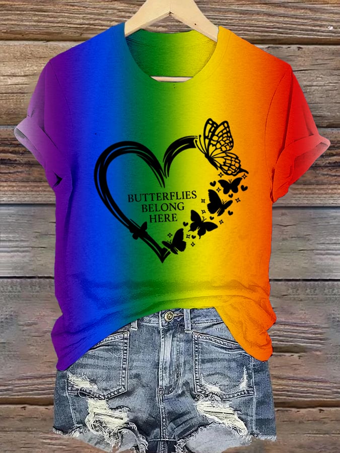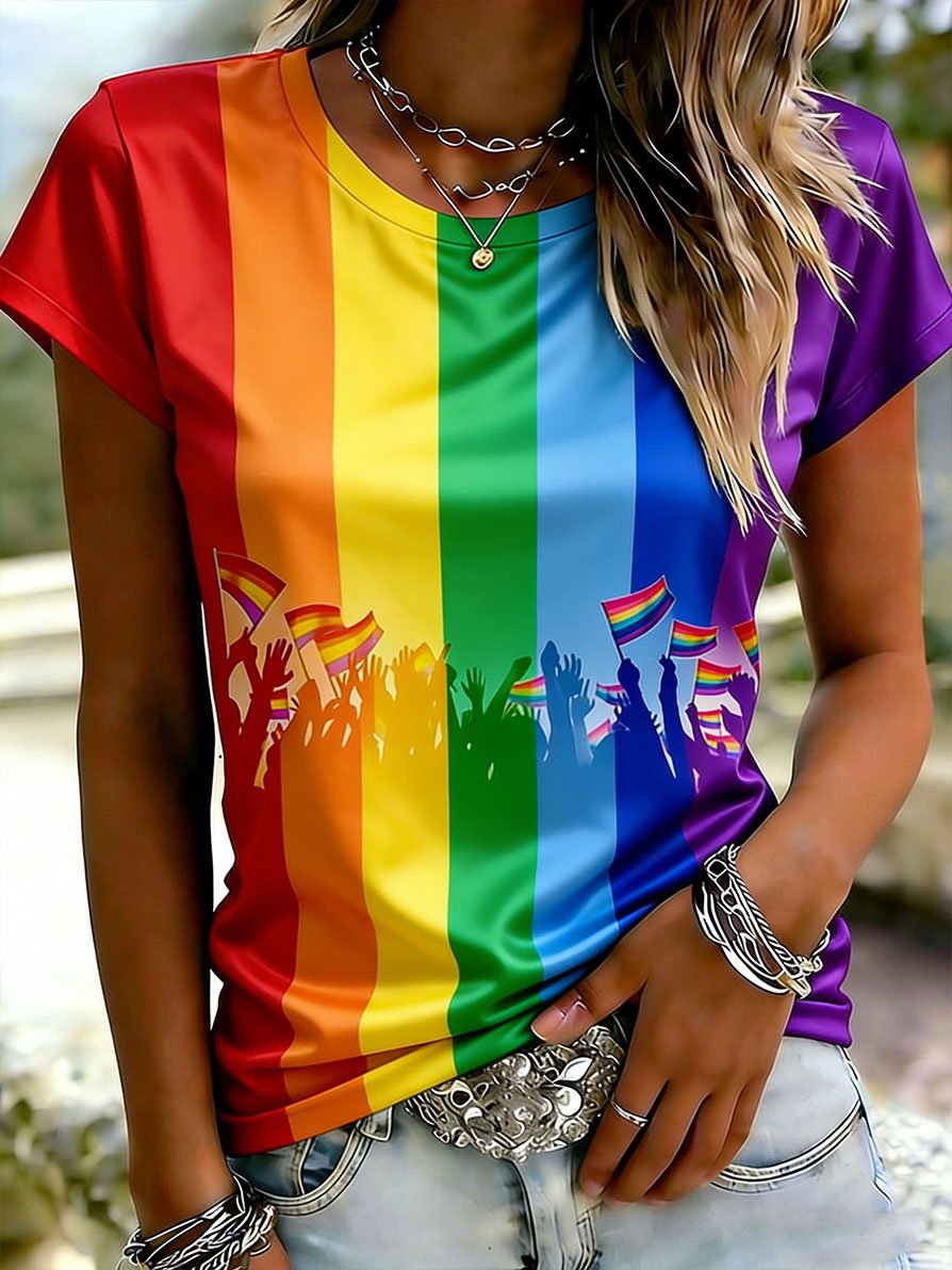 Women's Rainbow Gay Month Crew Neck Print T-Shirt Top