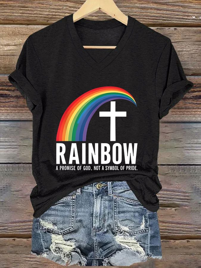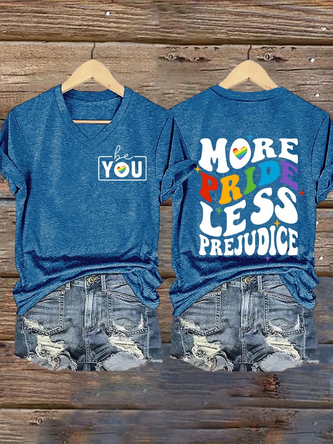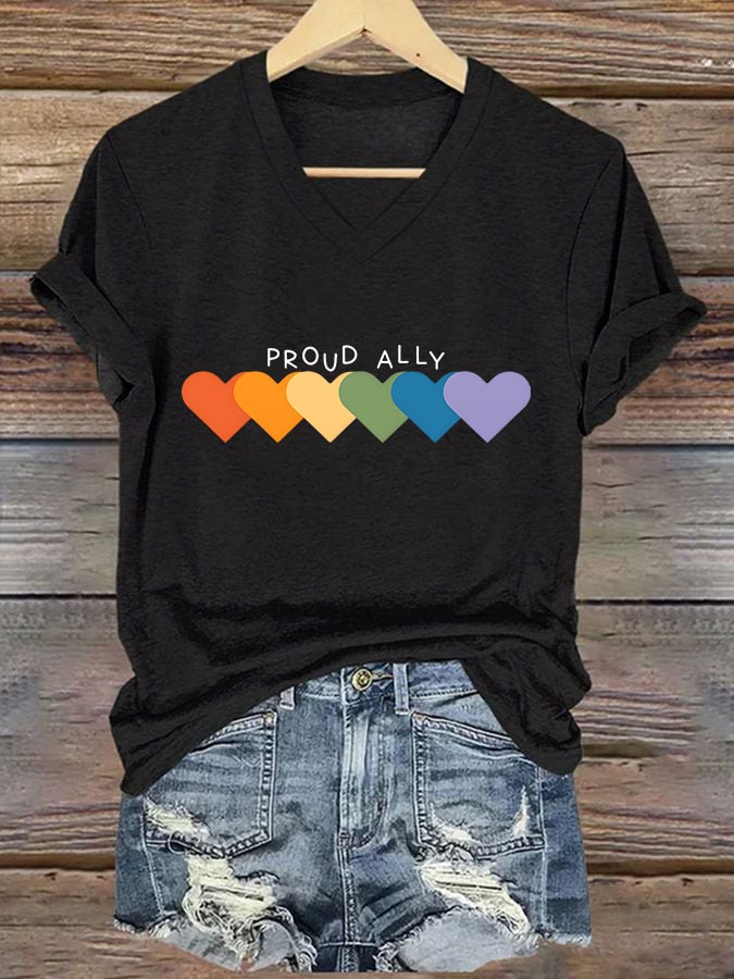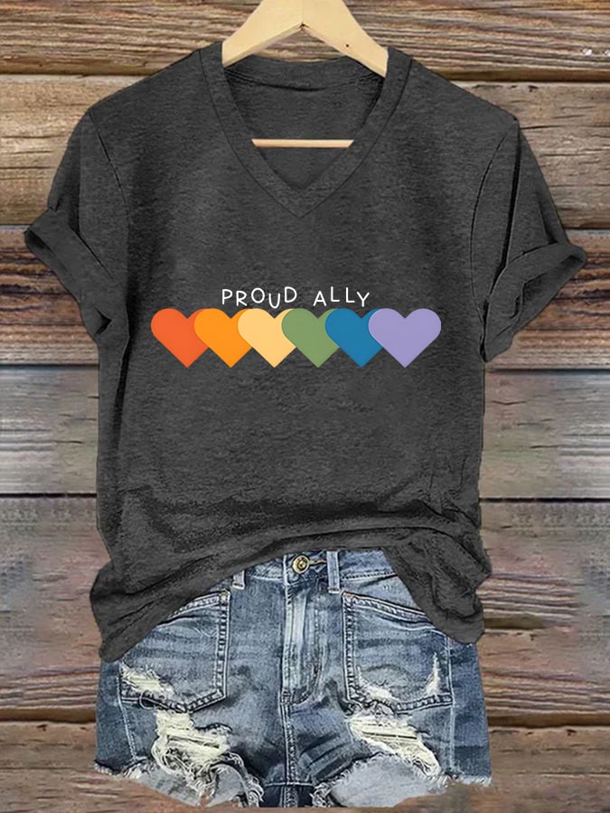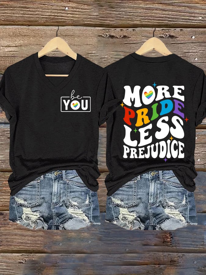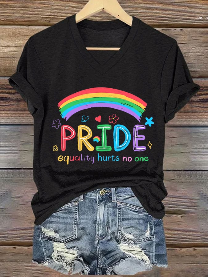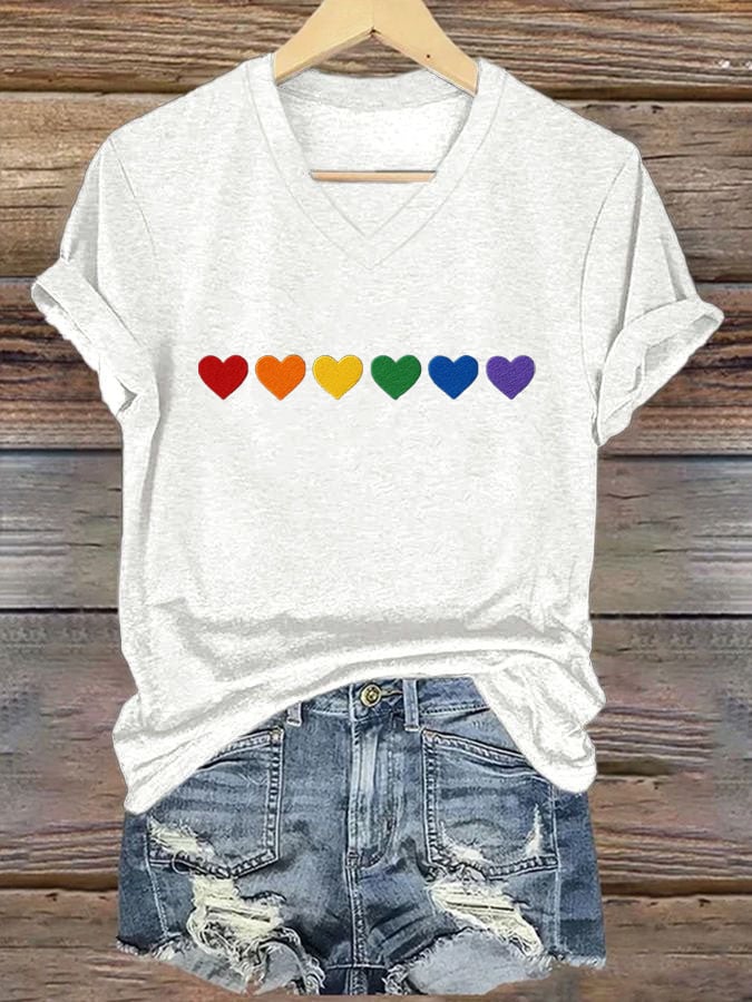 Women's Casual Pride Month Printed V-Neck Short Sleeve T-Shirt