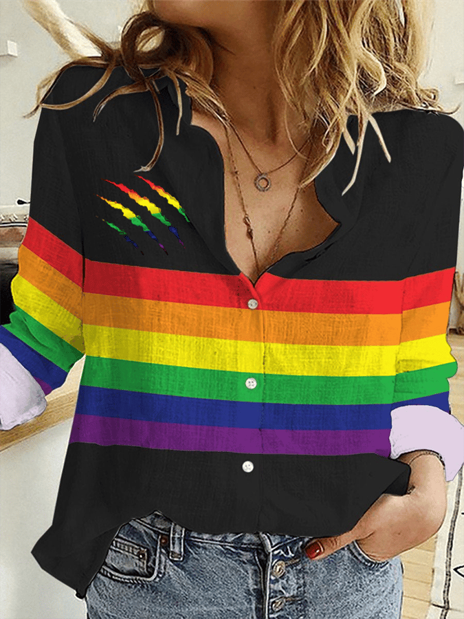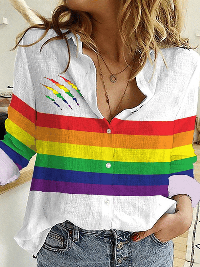 Women's Lgbt Rainbow Bear Paw Print Pride Month Casual Shirt