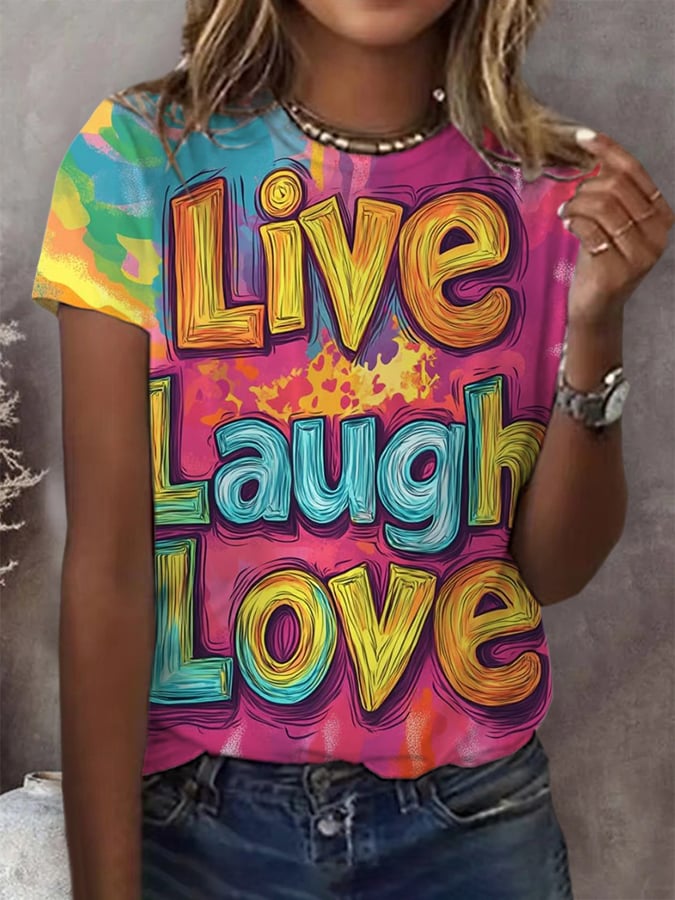 Women's Gay and Lesbian Month Graffiti Life Love Printed Short Sleeve T-shirt