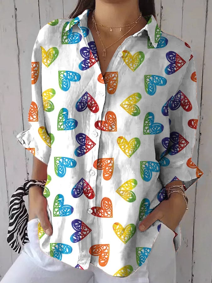 Women's Gay Pride Printed Cotton and Linen Shirt