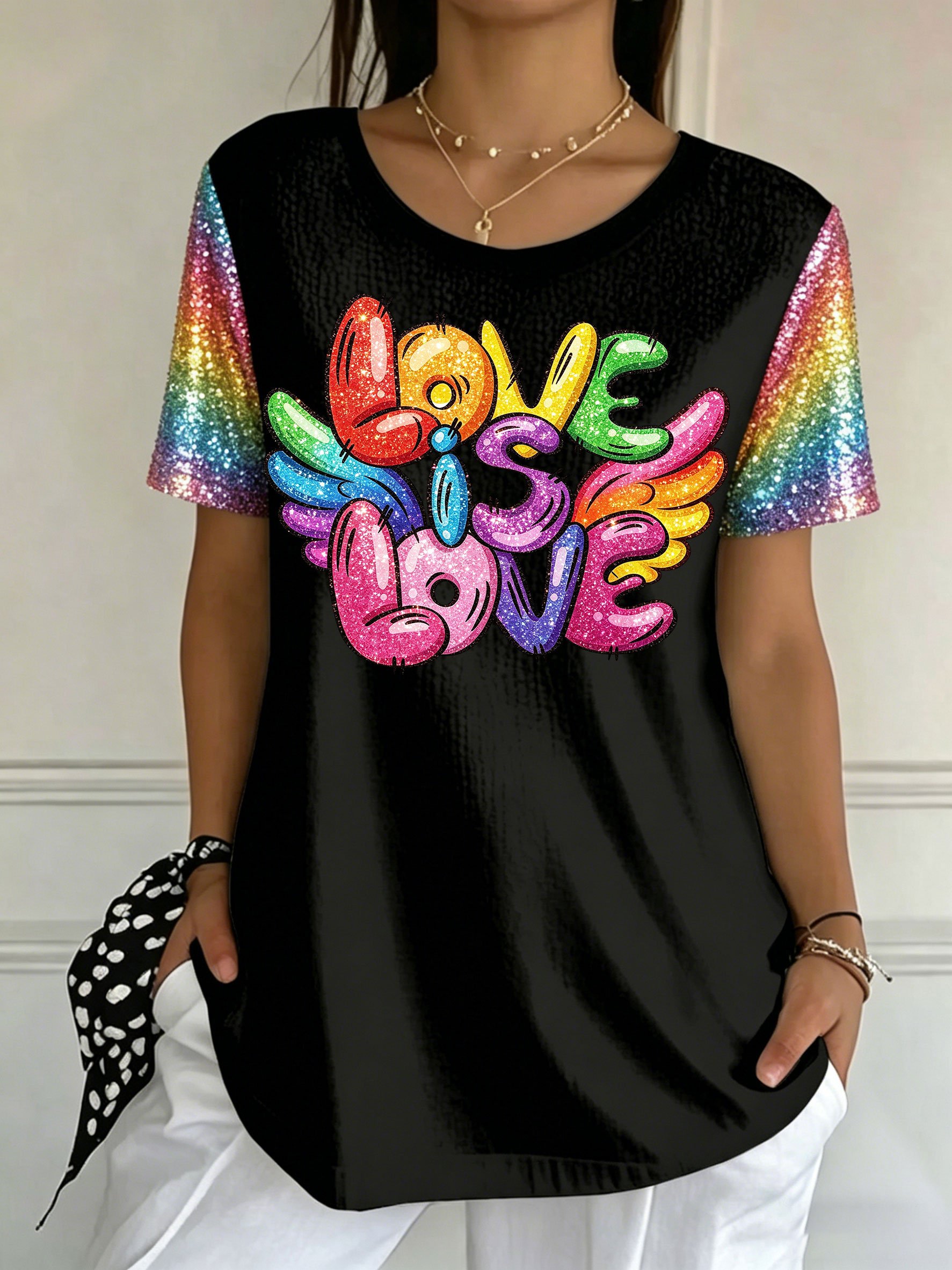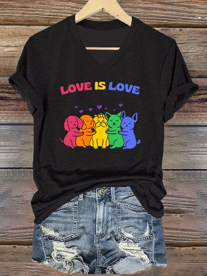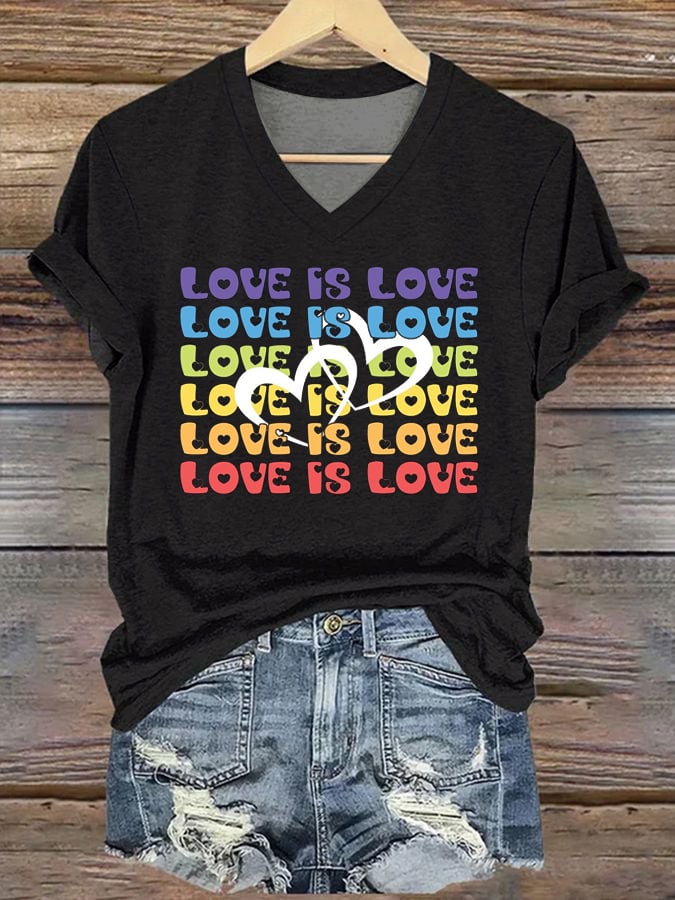 Women's Pride Month Gay Pride Month Love is Love Slogan Print V Neck T-Shirt Top