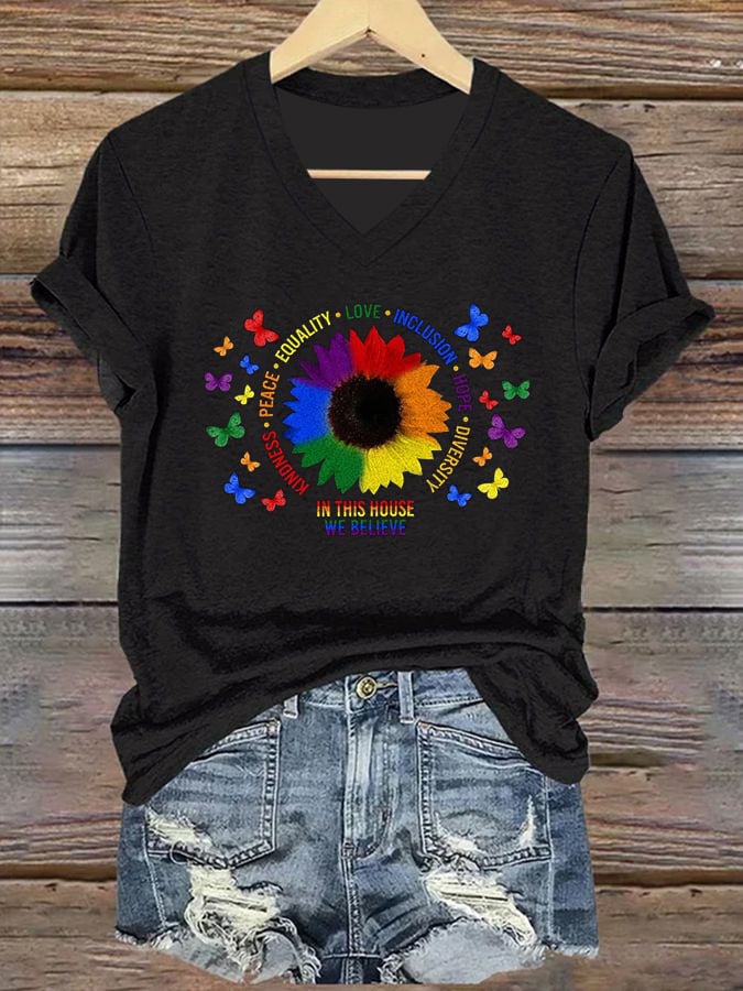 Women's Pride Month Gay Pride Month Printed V Neck T-Shirt Top