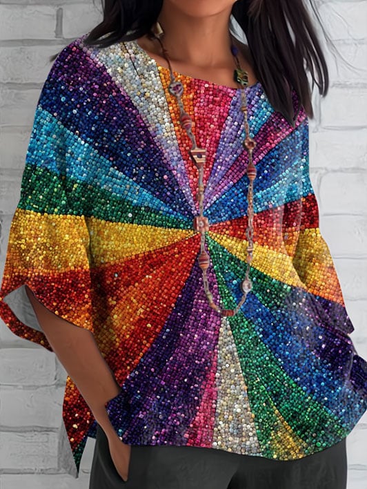 Women's Elegant Pride Month Retro Rainbow Art Graphic Shirt