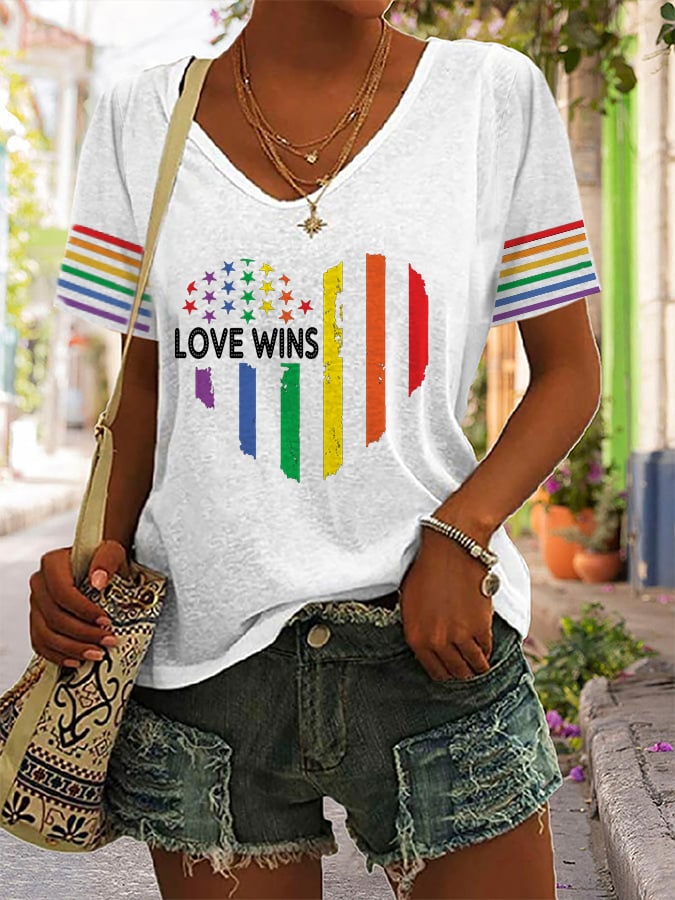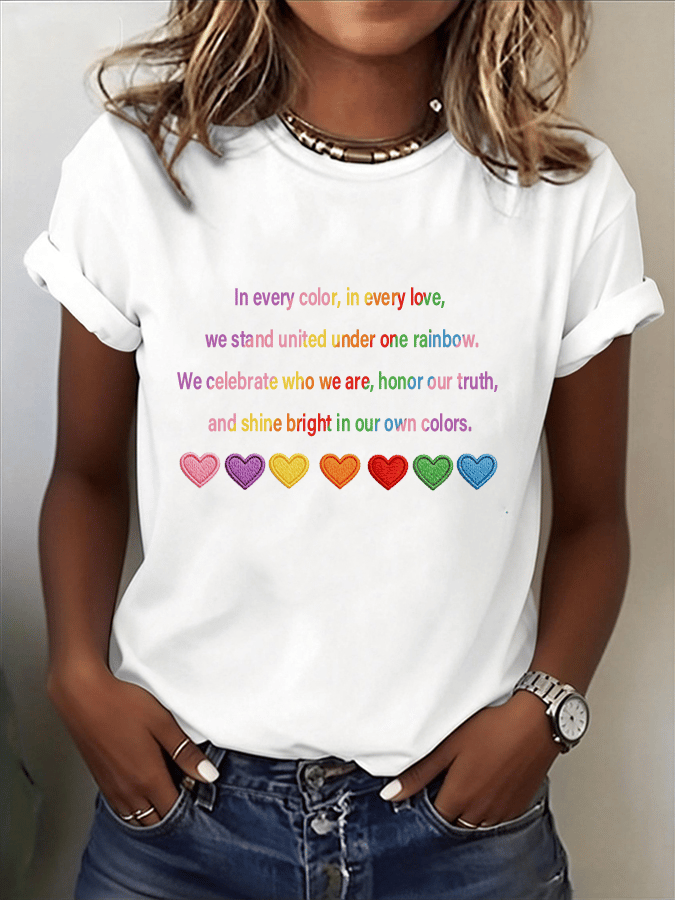 Women's LGBT Same-sex Rainbow Heart Print Short Sleeve T-shirt