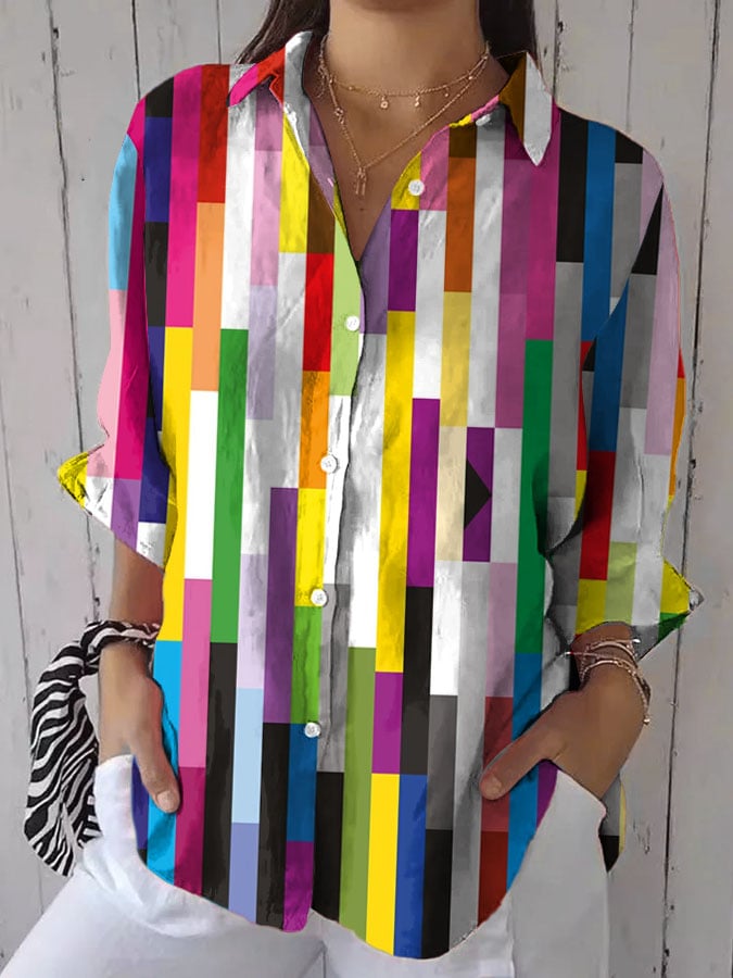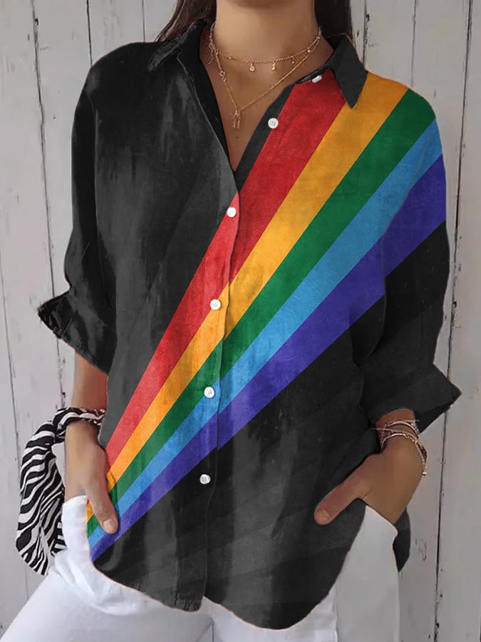 Women's Casual LGBT Pride Month Rainbow Print Casual Shirt