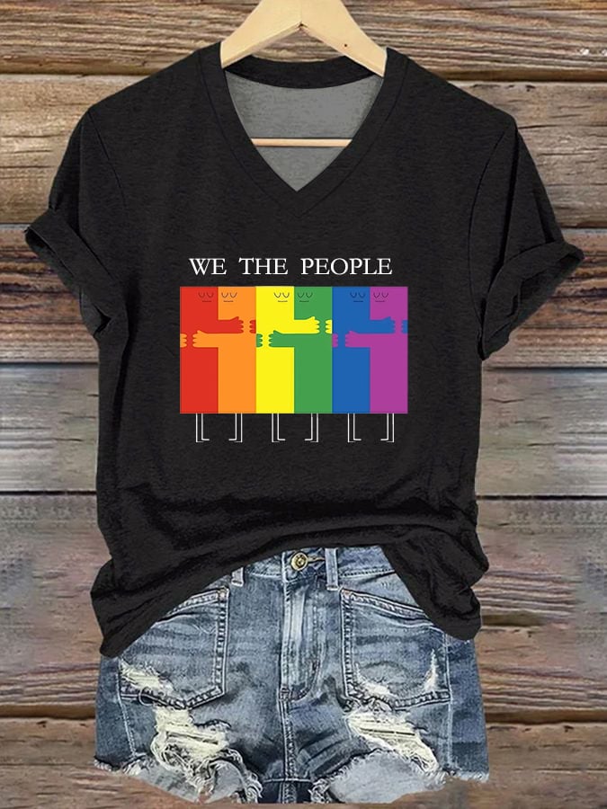 Women's Pride Month Rainbow People V-Neck T-Shirt