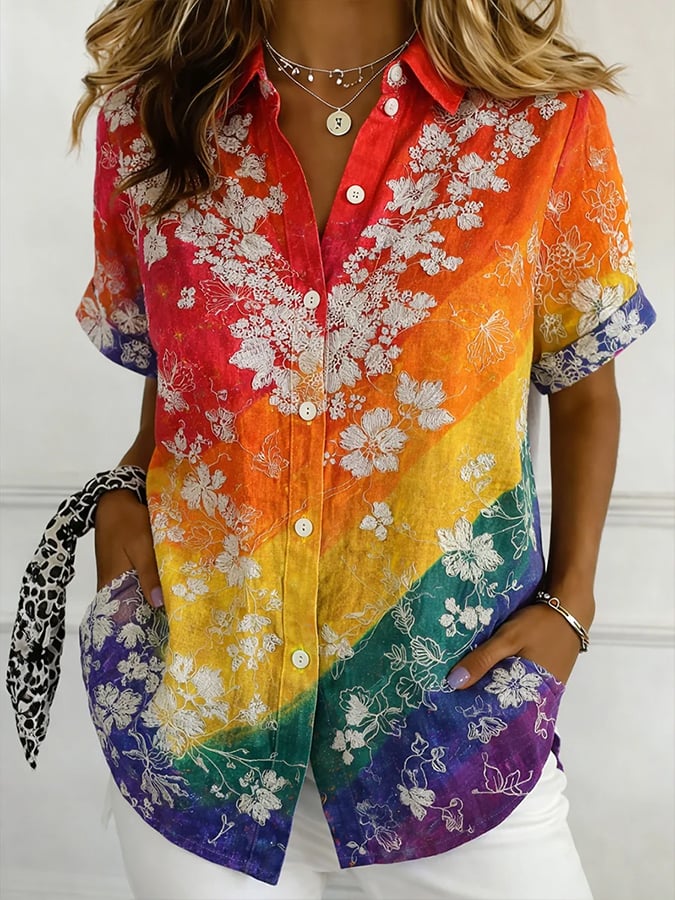 Women's Gay Pride Printed Cotton and Linen Shirt