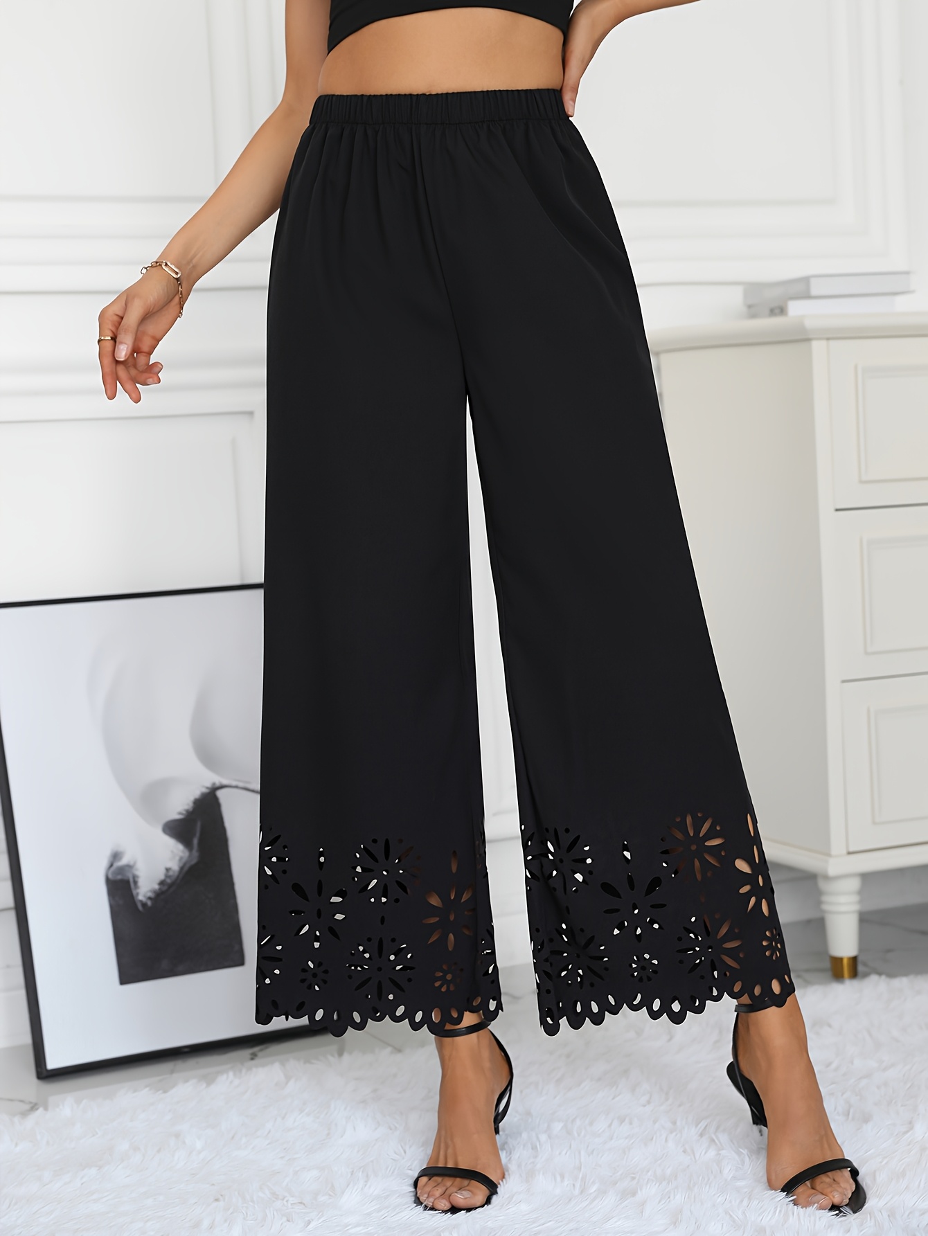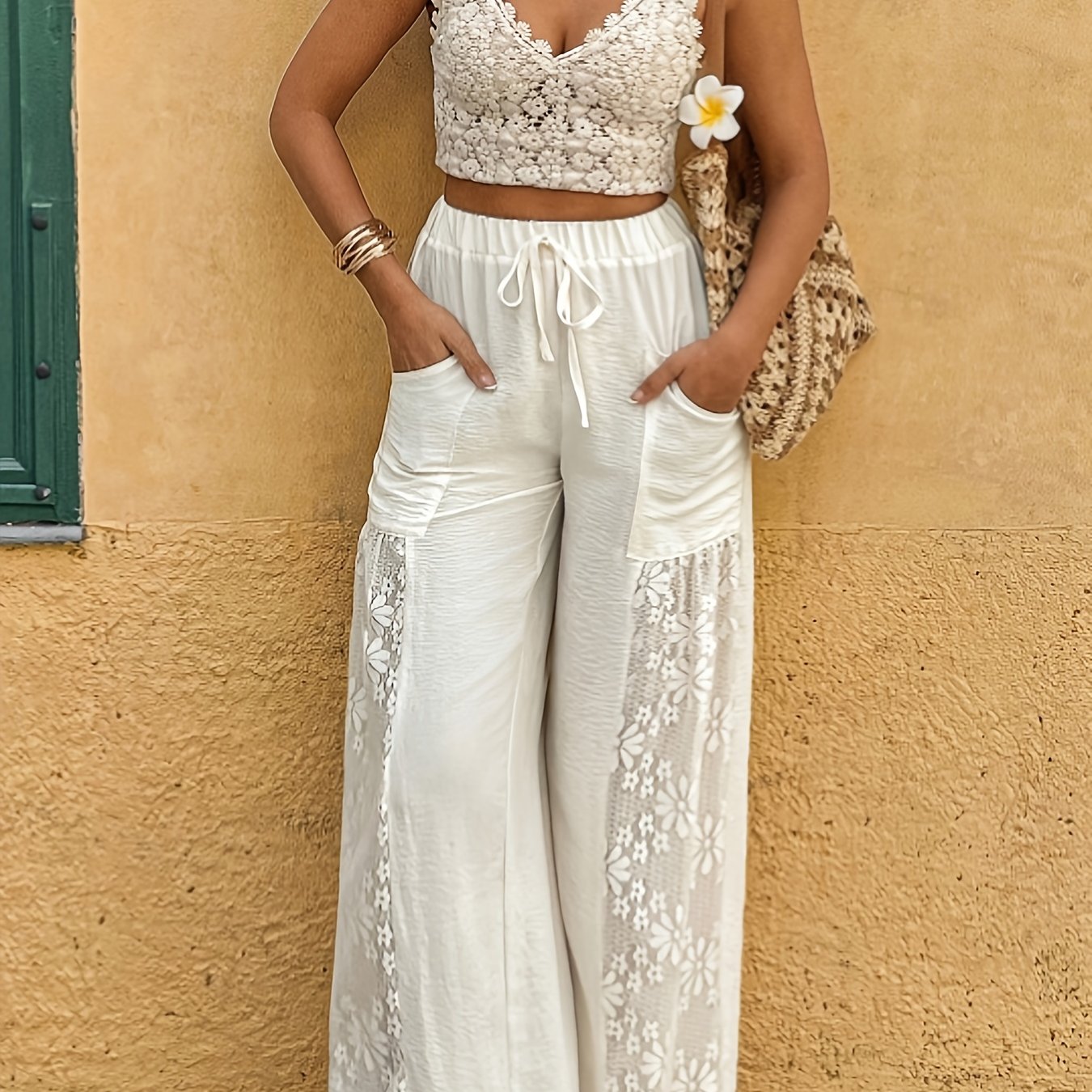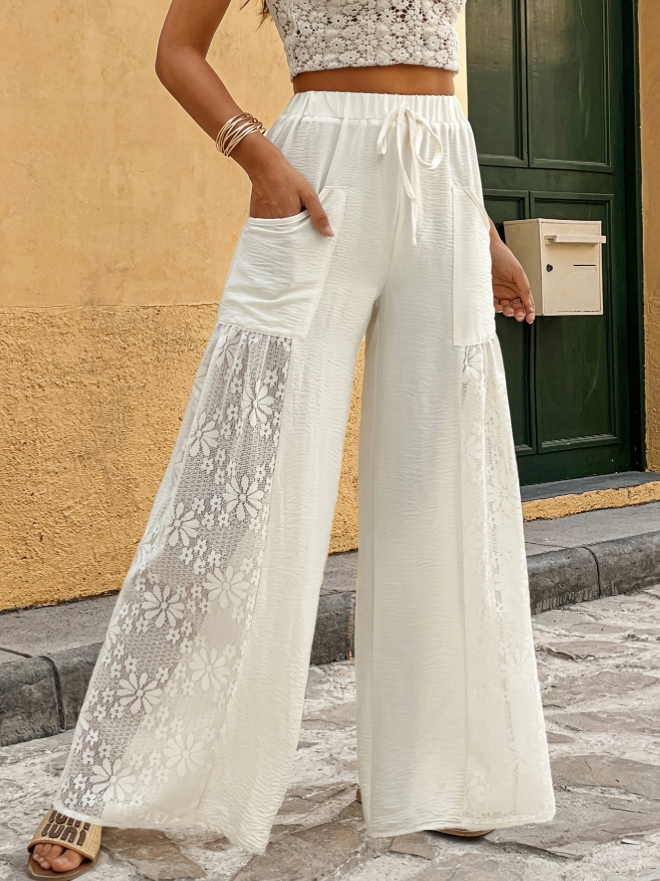 Women's Elegant Loose Fit Lace Casual Vacation Patchwork Wide-Leg Pants