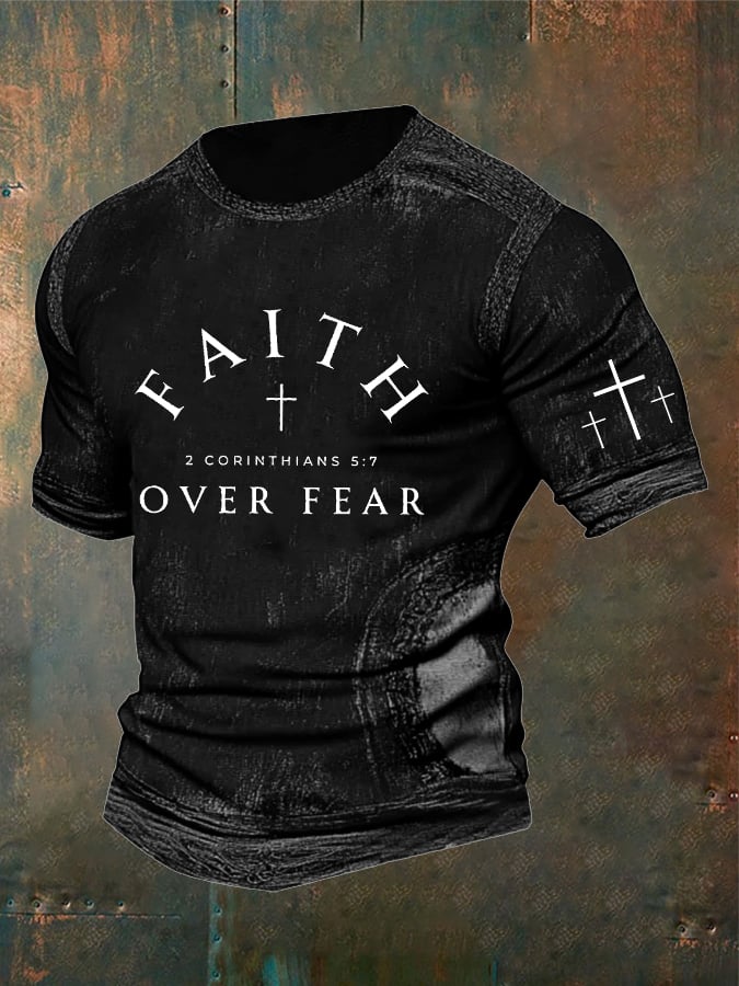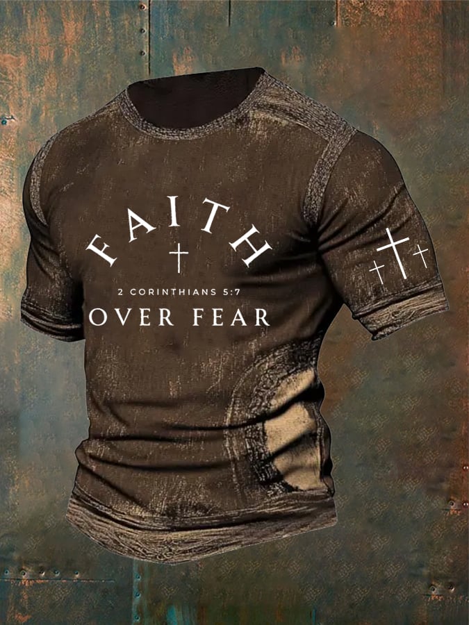 Men's Vintage Faith“Faith Over Fear” Print Casual T-Shirt