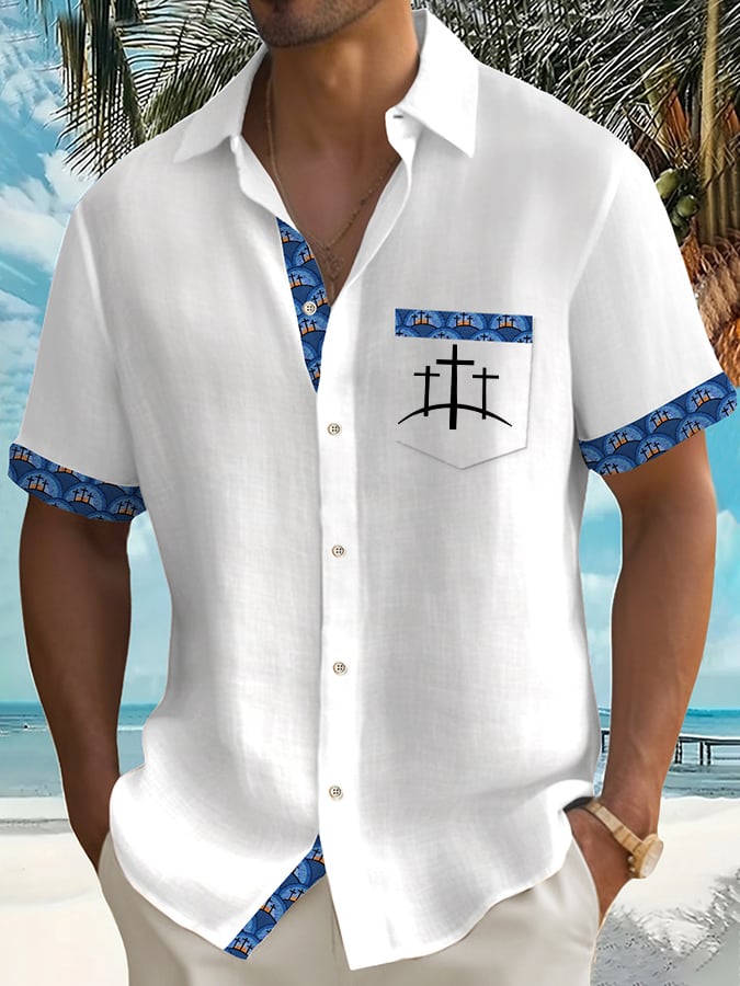 Men's Casual Vacation Faith Contrast Color Shirt