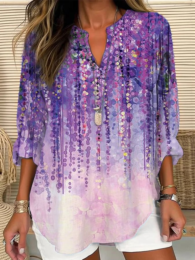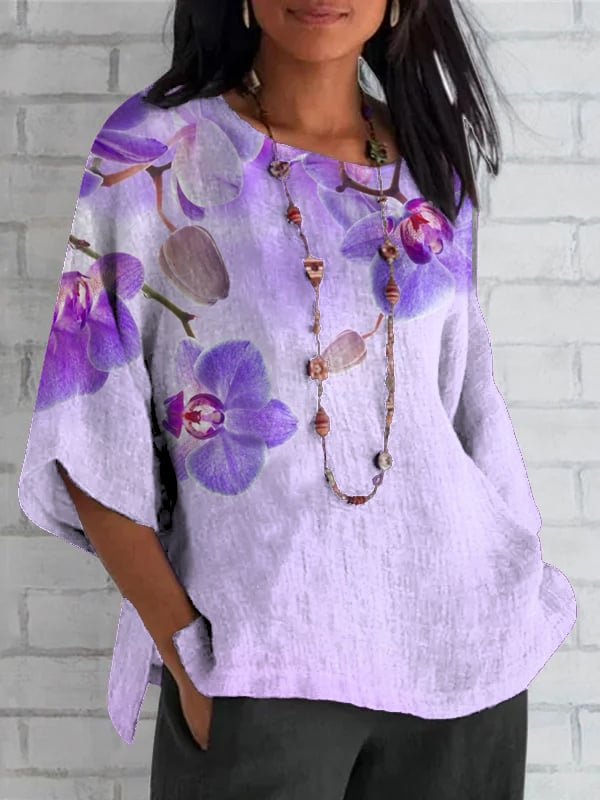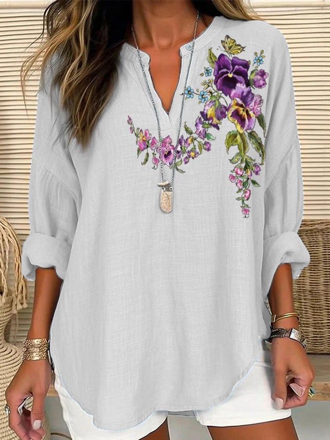 Women's Plants and Flowers Elegant and Beautiful Imitation Cotton and Linen Shirt Tops