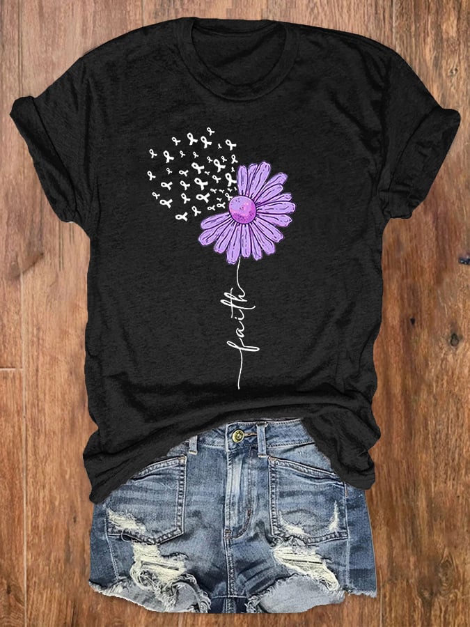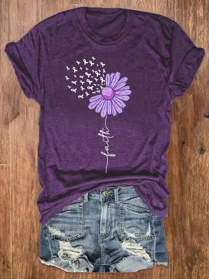 Women's Alzheimer's Purple Floral Print T-Shirt