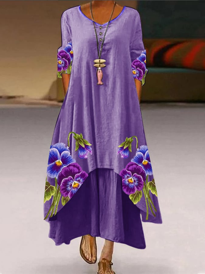 Women's Casual Retro Purple Art Cotton And Linen Shirt