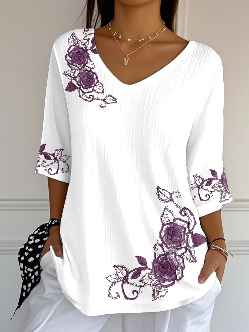 Women'S Casual Vintage Purple Floral Print Shirt