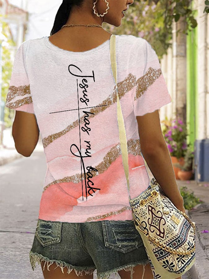 Women's Blessed By God Spoiled By My Husband Protected By Both Casual V-Neck Tee