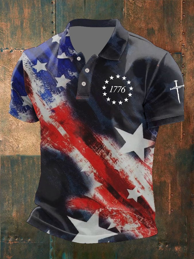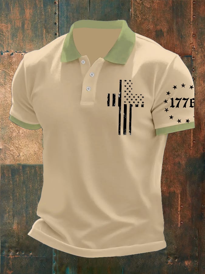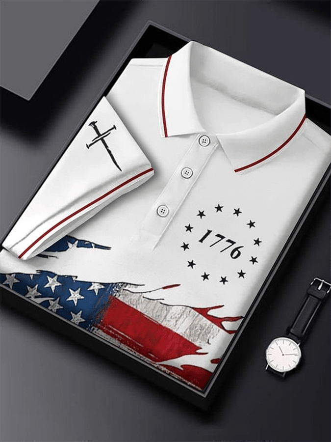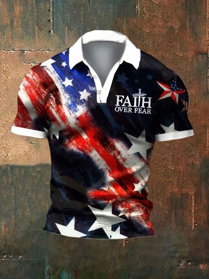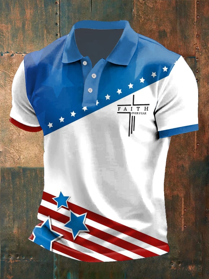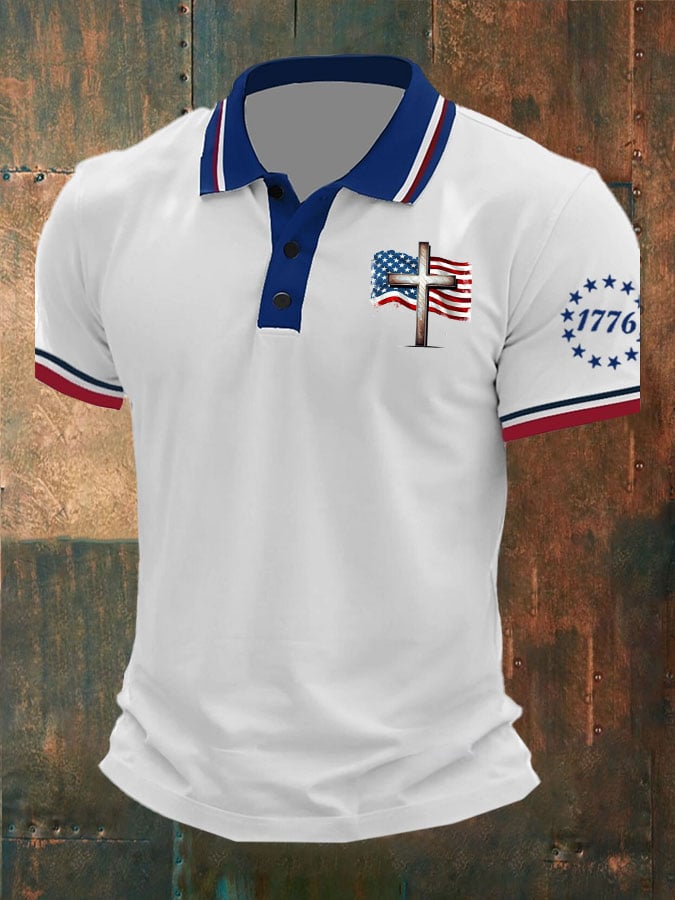 Men's Independence Day Faith Cross Printed Casual POLO Shirt