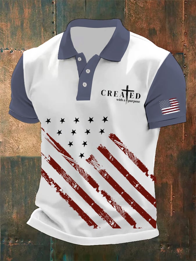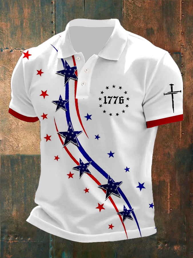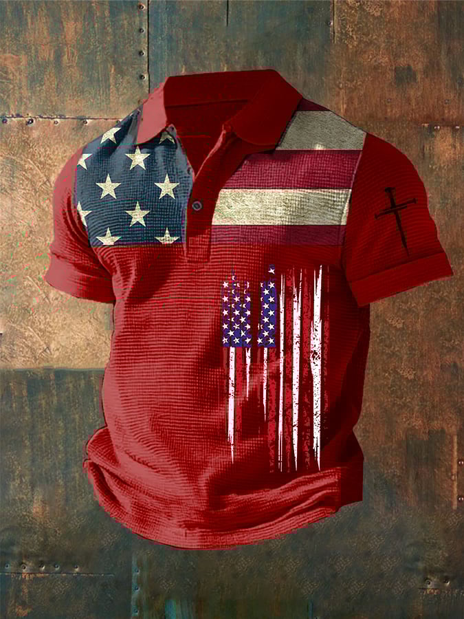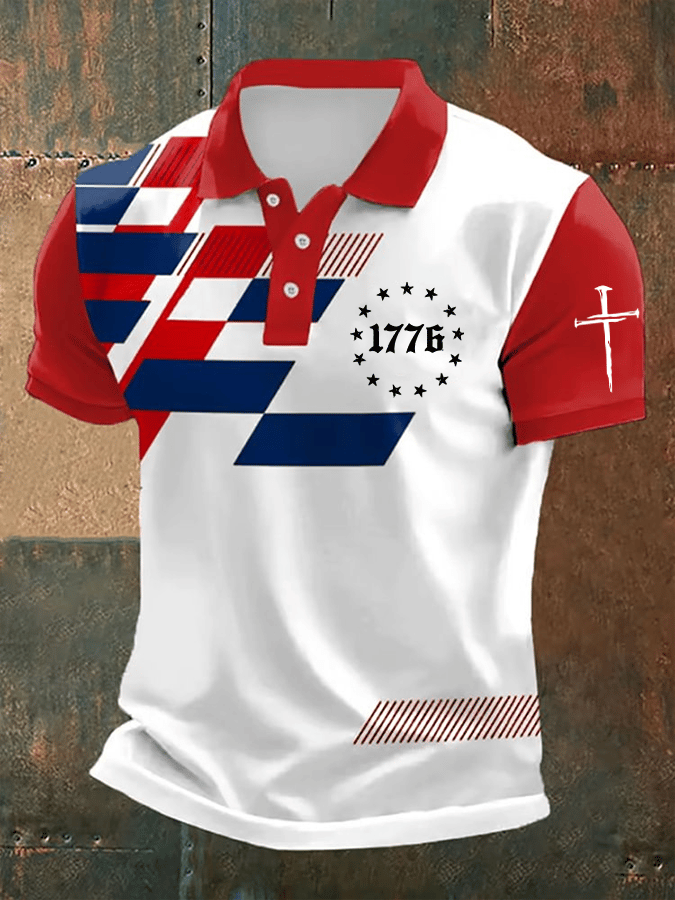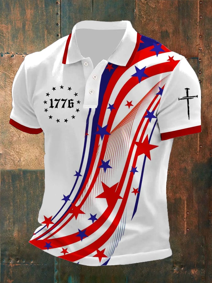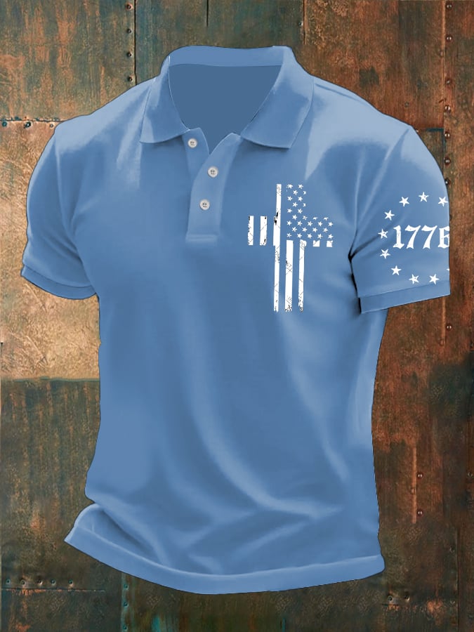 Men's Independence Day Faith Cross Printed Casual POLO Shirt