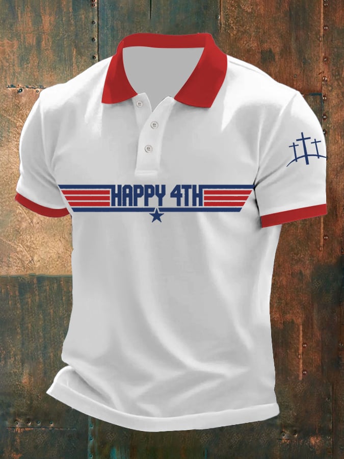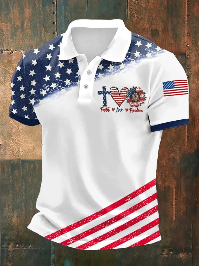 Men's Casual Faith Independence Day Printed POLO Shirt