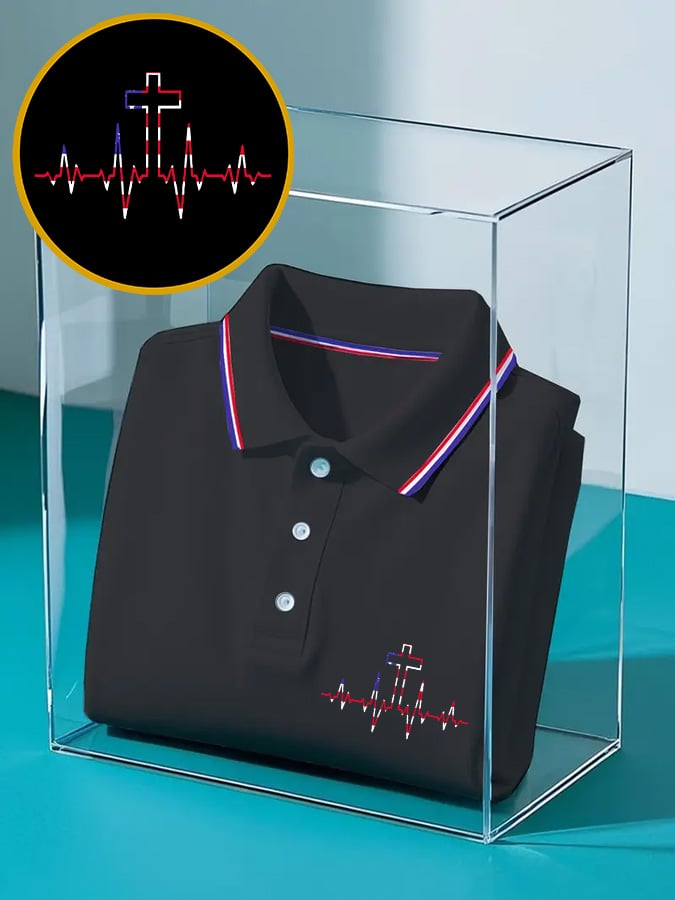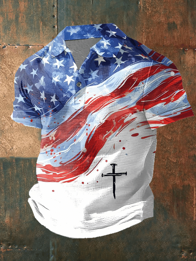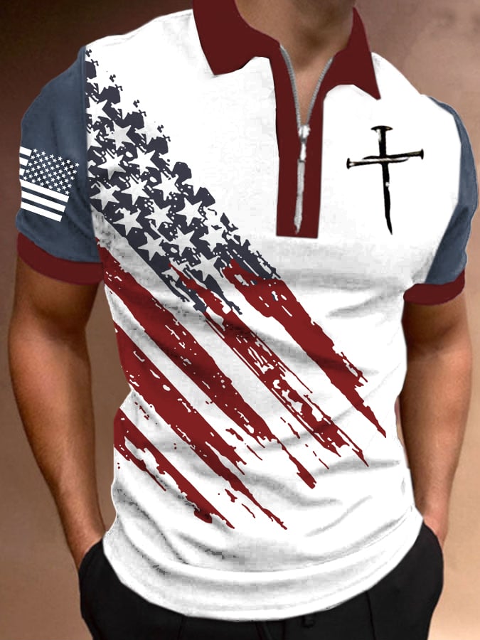 Men's Casual Christian Independence Day Flag Cross Printed POLO Shirt