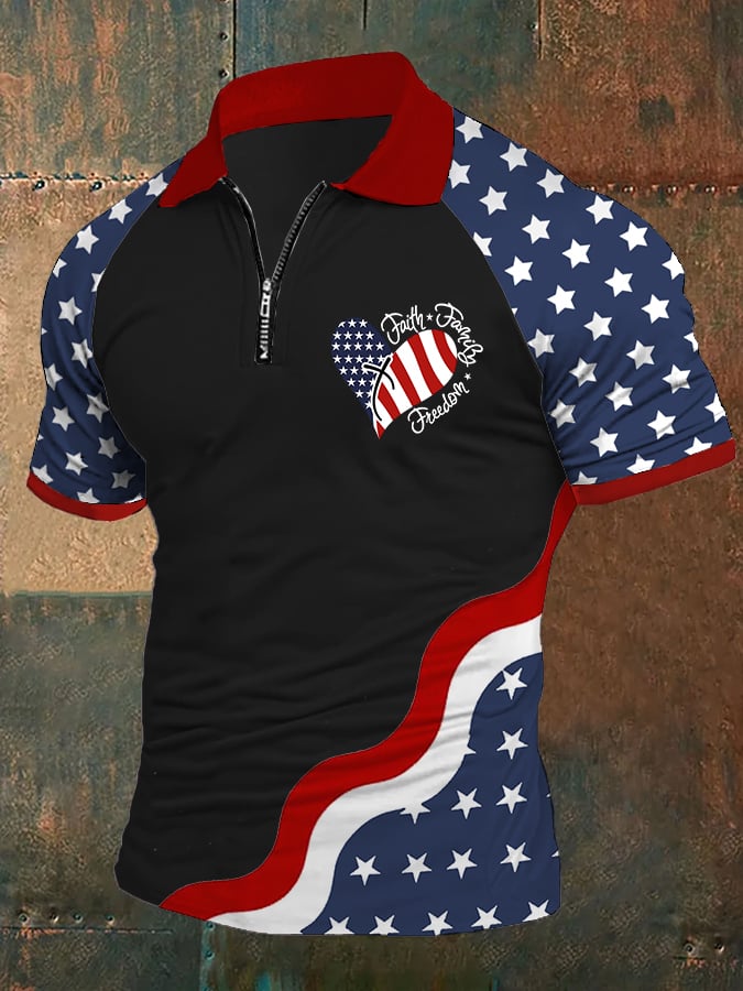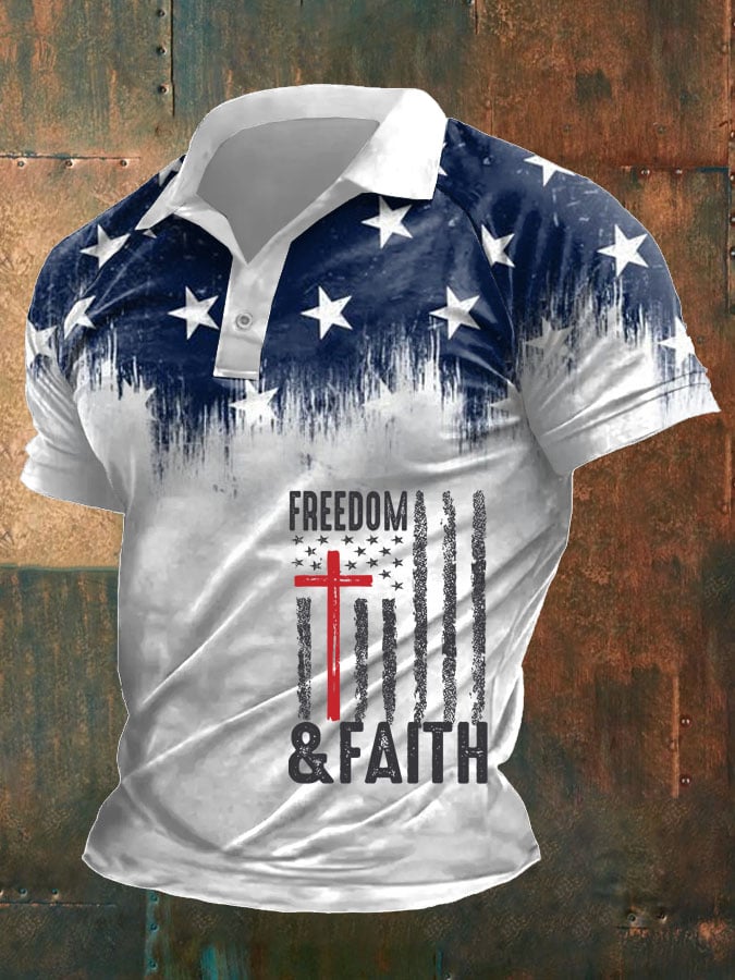 Men's Independence Day Faith And Freedom Print Polo Shirt