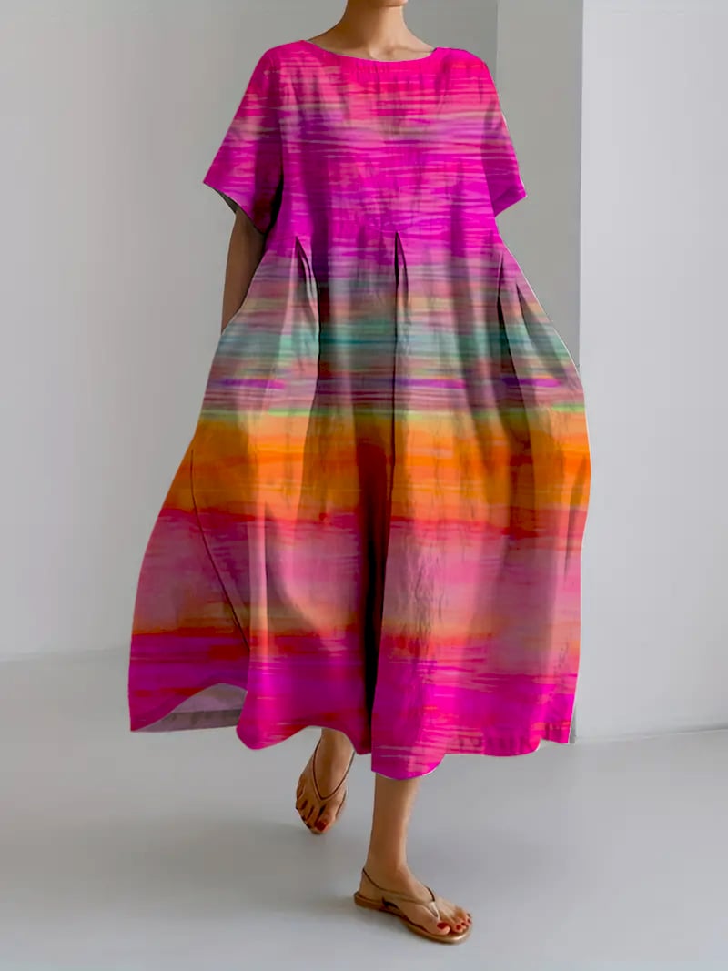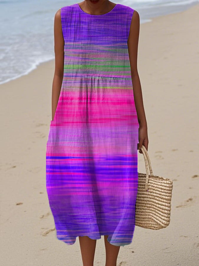 Women's Casual Retro Purple Art Gradient Cotton And Linen Dress
